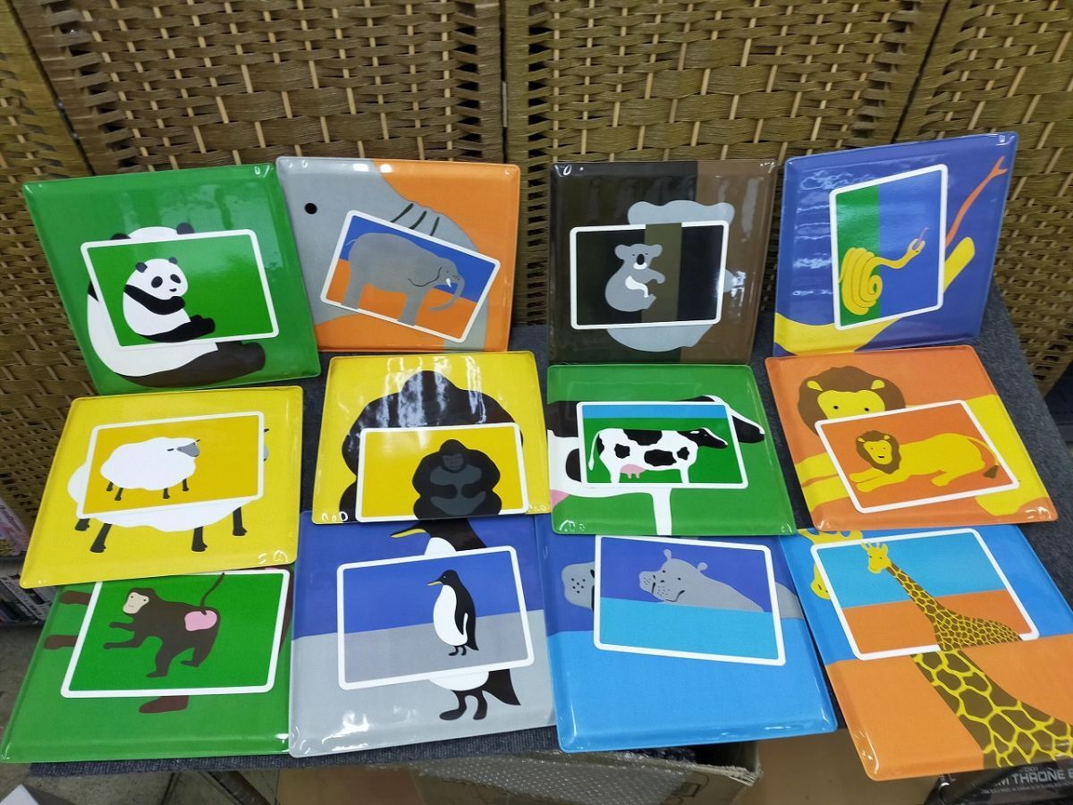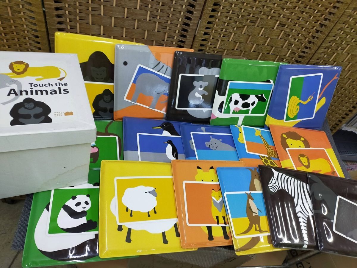 Benesseの英語教材 World Wide Kids の「Touch the Animals(どうぶつタイルセット)」です。タイルをタッチして動物の名前や鳴き声を学べる知育教材です。