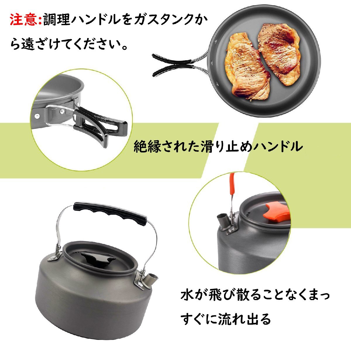 アウトドア 鍋 クッカーセット 調理器具 アルミニウム 軽量 鍋 ケトル キャンピング 10点セット 2~3人用 収納袋付き hw250