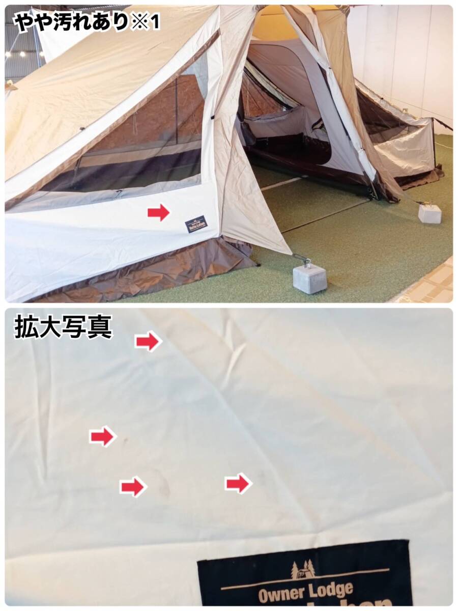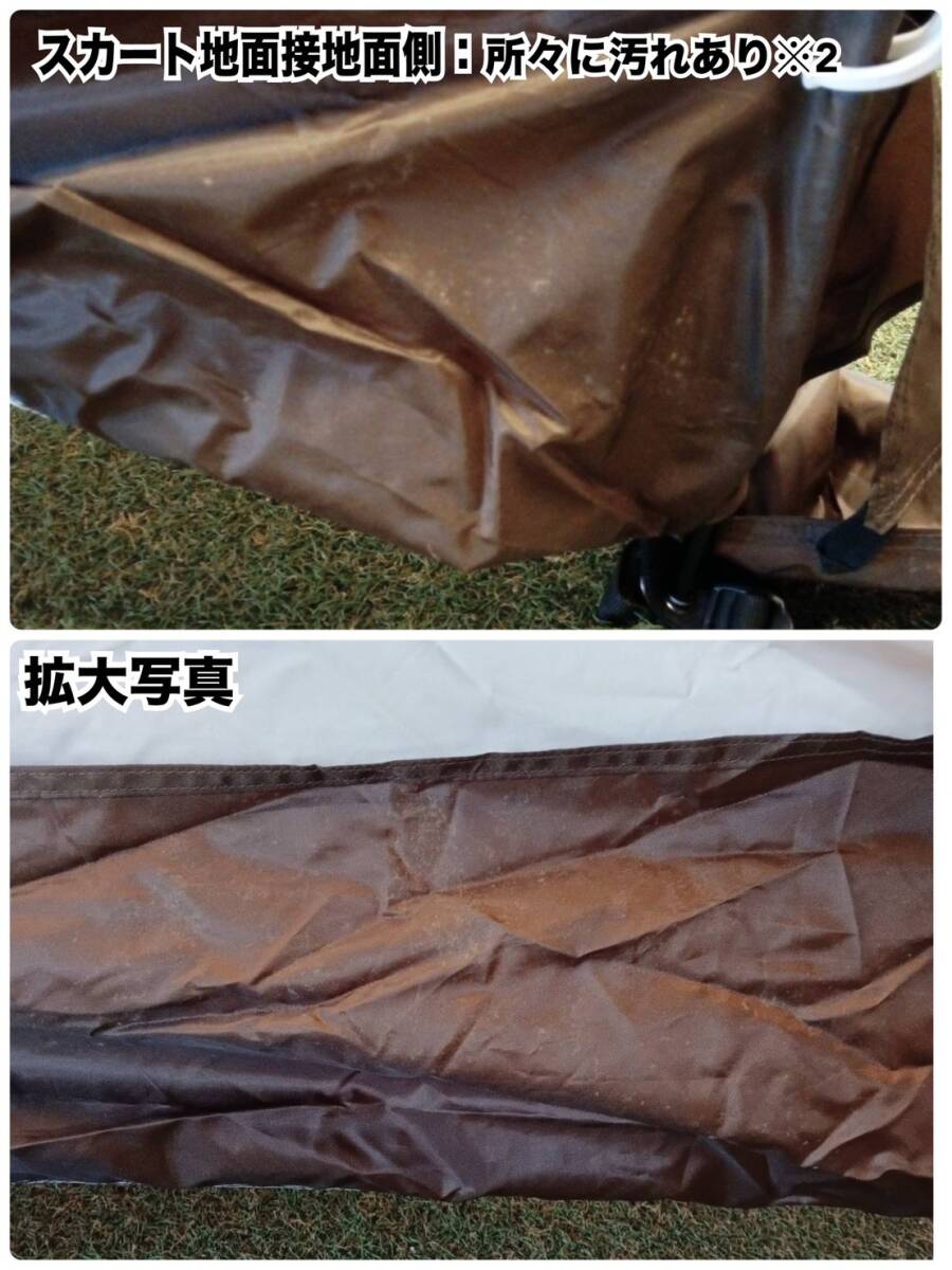 | 商品状態 | こちらの商品は中古品になります。フライシート:正面入り口左側(ロゴ近く)にやや汚れあり(写真※1参照)、スカート地面接地面側に所々、汚れ点在(写真※2参照)上記以外に、フライシート、インナーT、グランドシートに目立つ汚れ、破れ、穴あき、シームテープがれ、ベタつき、焚き火臭などはございません。※こちらの商品はセットでの販売になります。バラ売りでの販売には対応しておりませんのでご了承くださいませ。 | |