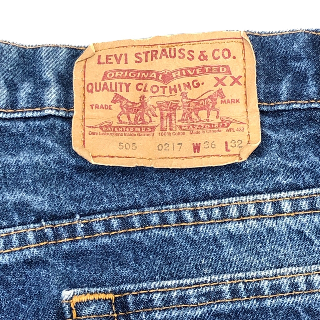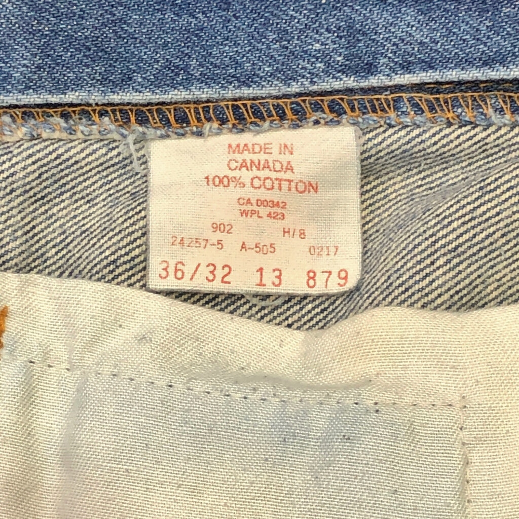 | 【商品管理番号】 T1877 【ブランド】 Levi's/リーバイス 【サイズ】 W36 L32 【実寸サイズ】 ウエスト:約88cm 股上:約32cm 股下:約79cm わたり幅:約31cm 裾幅:約20cm 【主な素材】 表地 : コットン 【色】 ブルー 【仕様】 生産国 : カナダ製 90年代 505 【状態】 汚れ:もも キズ:ヒップ | |||