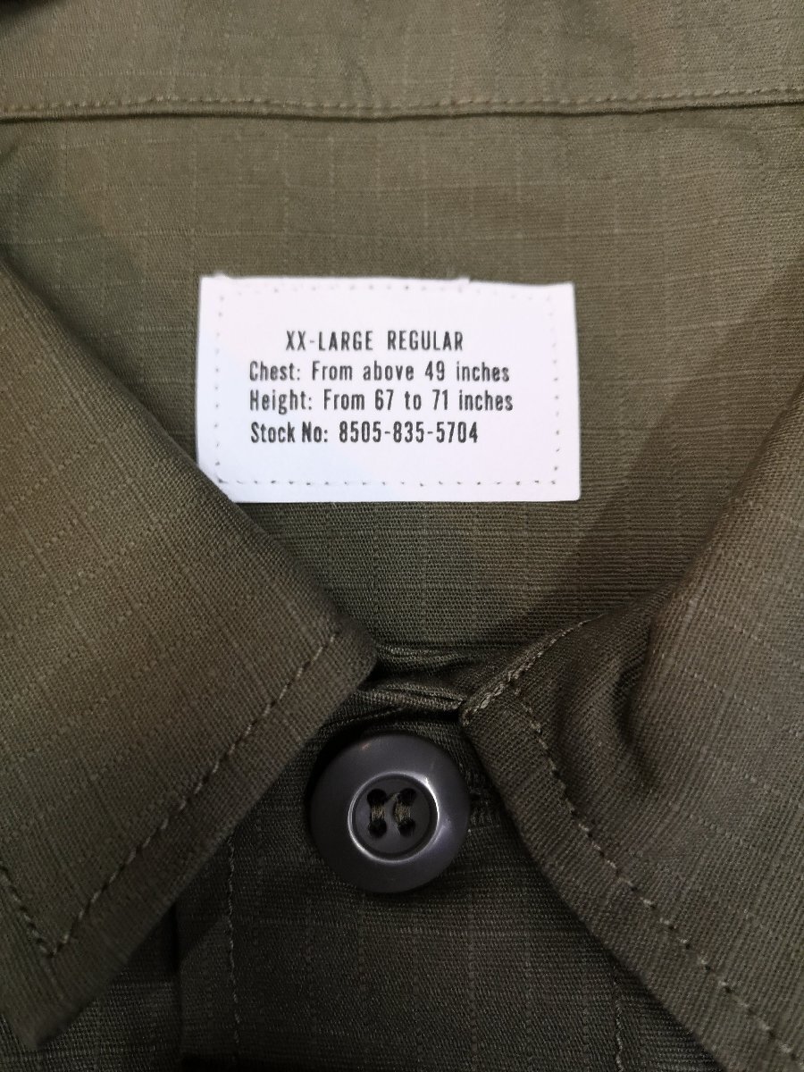 1962年に採用されたジャングルファティーグの歴史は長く、大きく分けて4度の改良を経ています。当時、開発に当たりM42パラトルーパージャケット、パンツが参考にされており、ジャケットは4個、パンツは6個のポケットを持つスタイルでした。特徴のある斜めに配置された胸ポケットは、戦闘で体を伏せた場合に物を取り出しやすいように工夫されました。また、ポプリン生地は従来のコットン生地より軽量で速乾性に優れていました。 ジャングルファティーグは、当初採用されていた露出されたボタンやエポレットは廃止され、ポプリン生地は鉤裂き防止加工が施されたリップストップ生地に変更されました。実戦のなかで改良が加えられ、完成度の高くなったジャングルファティーグは後のBDUに大きな影響を与え、4ポケットジャケット、6ポケットパンツのスタイルは、1990年代末まで戦闘服の基本形となりました。 このレプリカは最も完成度の高い最終(4th)モデル元に、素材も同じコットンポプリンのリップストップ仕様で製作しており、細かなディテールまでも忠実に再現しております。 素材:コットンポプリン100%リップストップ サイズ表記XXL (身幅70cm/肩幅53cm/着丈77cm/袖丈70cm) 程度となります。 沖縄離島を除く全国500円でお送りいたします、落札価格にプラスでお願いいたします。