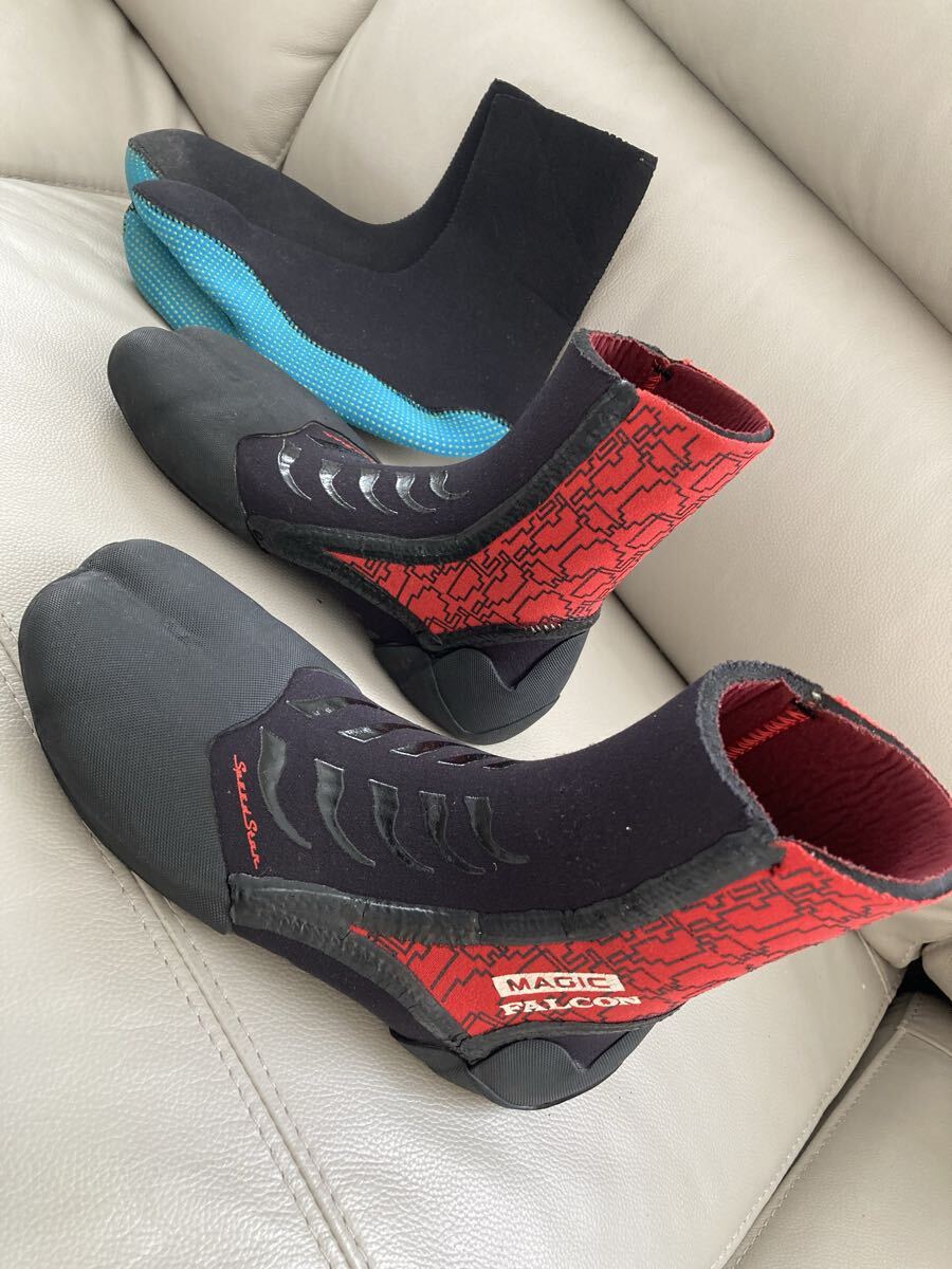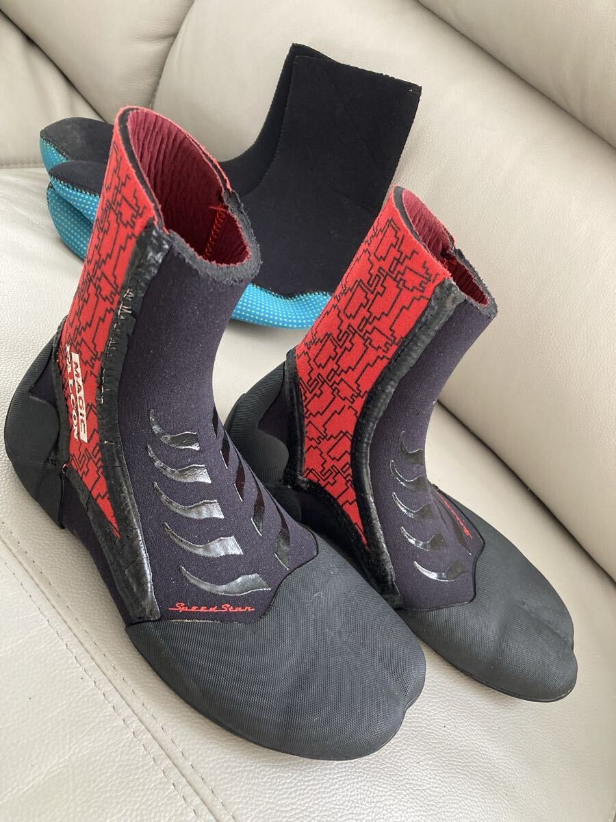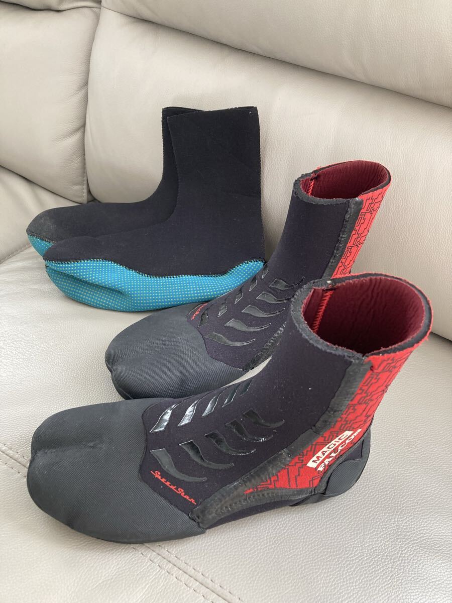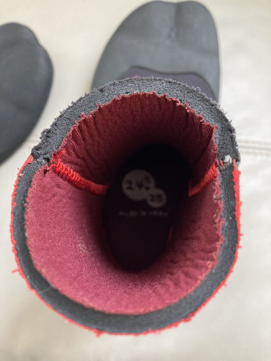 ブーツは3足回しで1シーズン使用後、何年か屋内保管でしたので24.5センチから25センチ表示ですが経年縮みを考慮して24センチから24.5センチが適用です。