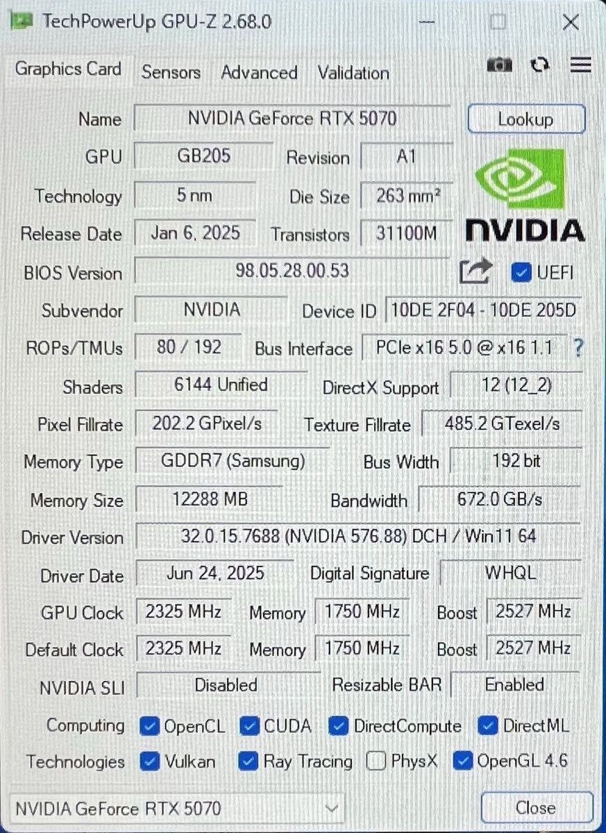 玄人志向 GeForce RTX5070 12GB