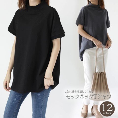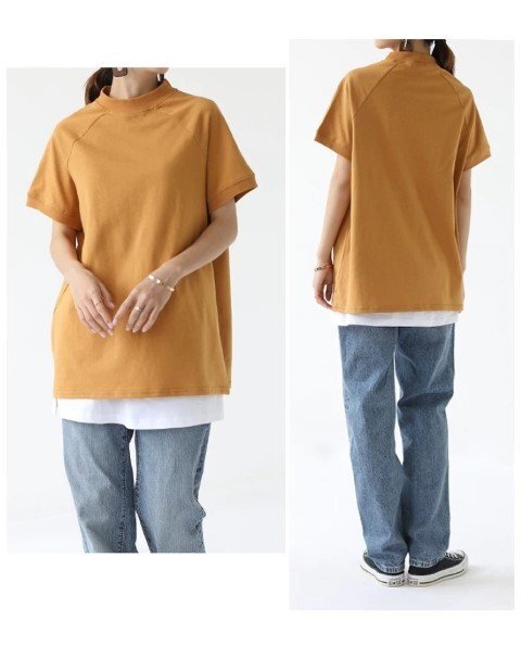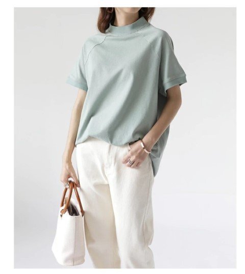 ・こなれ感を演出してくれるモックネックTシャツ。着回し抜群のシンプルデザインです。
