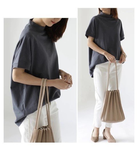 ・上品できれいめな印象を演出してくれるモックネックで、パンツでもスカートでもオシャレに決まります。