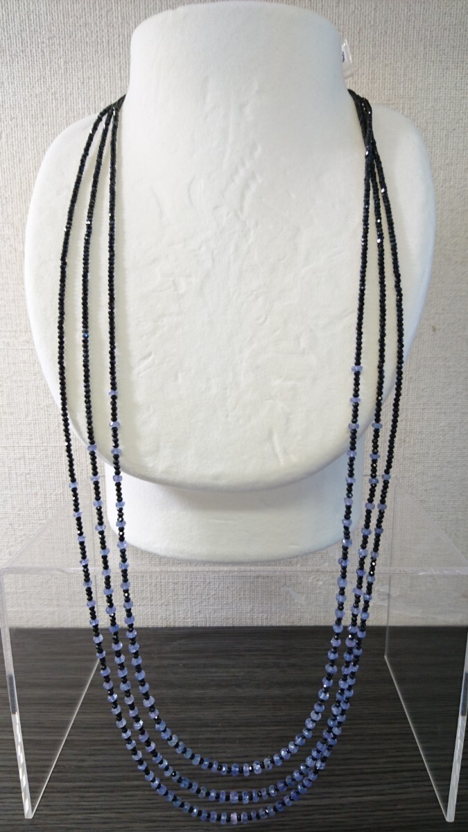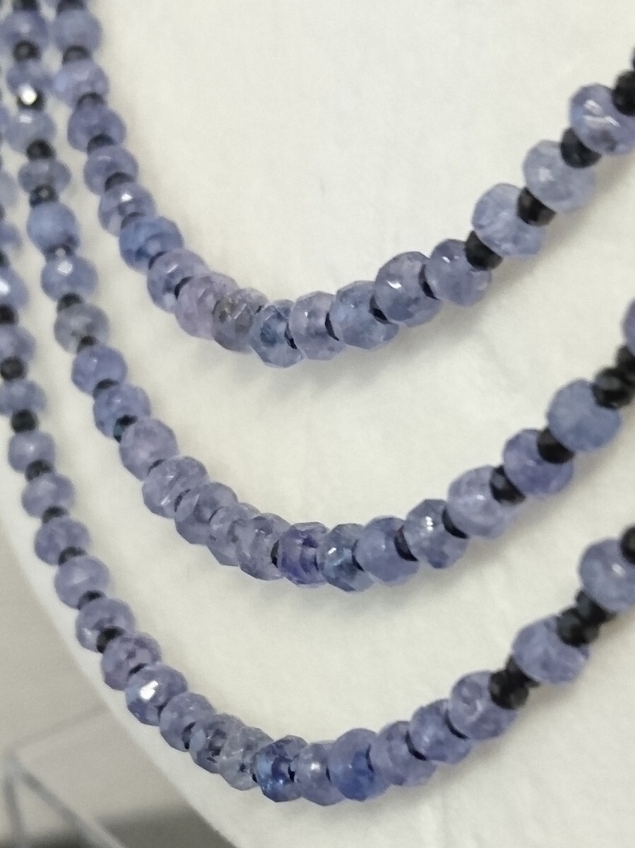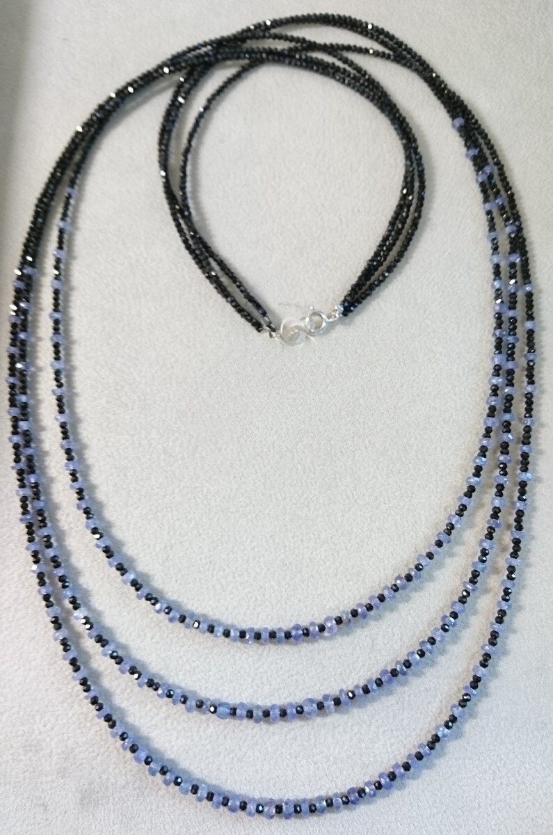 タンザナイトとブラックスピネルの3連ロングネックレスです。