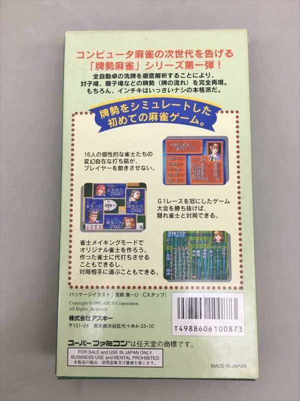 牌勢麻雀 凌駕 はいせいマージャン りょうが 箱 取扱説明書付き スーパーファミコン ゲームソフト 2511BKM028