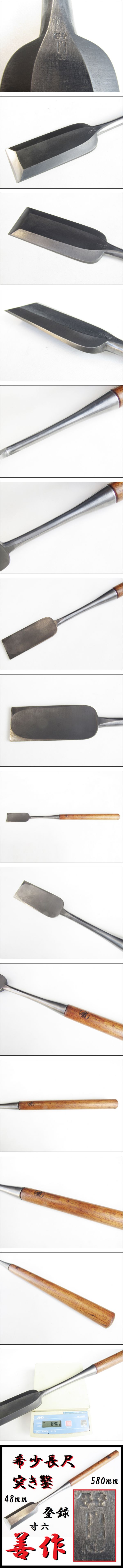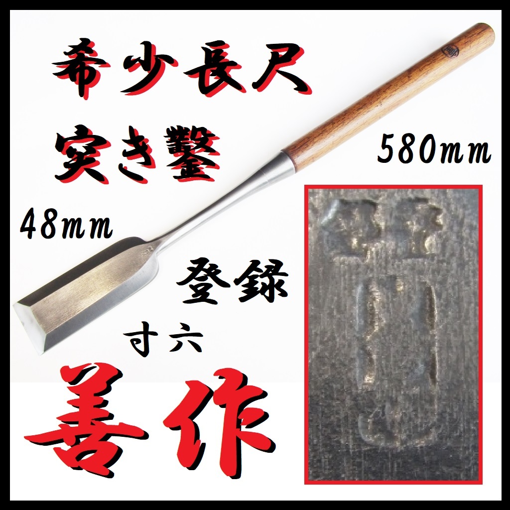 | 美品 名工 善作 希少 長尺 突き鑿 本職用 寸六 播州 突き鑿 登録 善 玉鋼 一寸六分 四十八粍 48mm 約2尺 580mm 丸重刻印 溝掘り ホゾ穴加工 相欠 胴付 宮大工 舟大工 家具職人 | |