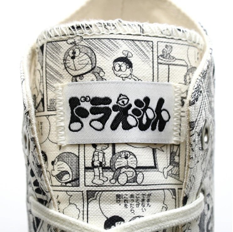 | 2025年に連載開始から55周年を迎えた国民的まんが「ドラえもん」のアイテムが登場。 原作コミックスの中から、色々な表情のドラえもんや、ドラえもんとのび太の2人のシーン等を抜き出して作成したオリジナルの柄をアッパー全面に採用したスペシャルなデザイン。 多くの名シーンを取り入れることで、ひとつとして同じ柄の出方がなくファンの心をくすぐる一足。 タンにはコミックスをイメージしたモノクロ仕様の「ドラえもん」ロゴラベルが付属。 カラーはオフホワイトの1カラー展開。 オリジナルカートンも付属し特別感のある一足。 ALL STAR AGED SPEC ・洗い加工を施したアッパー ・艶出し加工を施した生成りテープ ・6ミリ幅のコットンシューレース ・光沢の強いハトメ ・クッション性に優れた高密度ウレタンフォームとラバースポンジのインソール ・トウスプリングを低めに設定したクラシックなシルエットのラスト | |