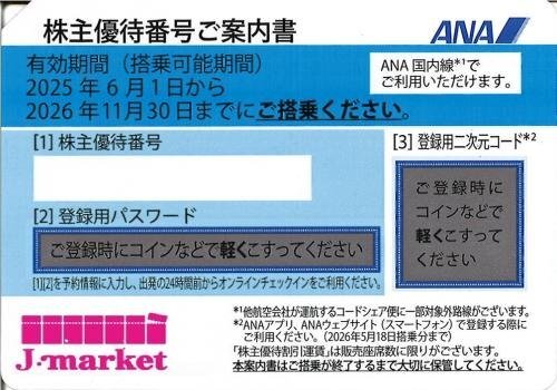 ANA 全日空 株主優待券 10枚セット番号通知は送料無料(1セット10枚のみ対応せていただきます) 2026年11月30日まで