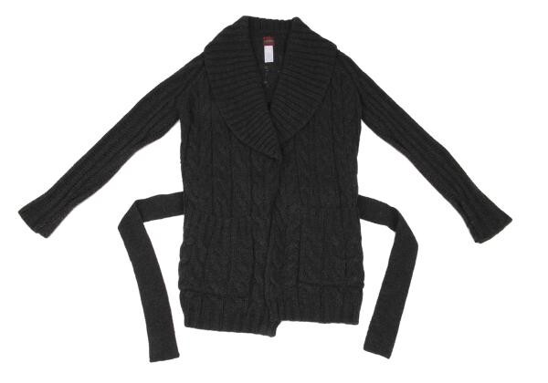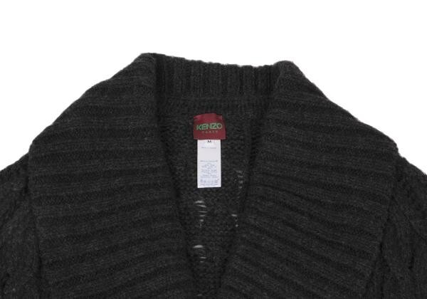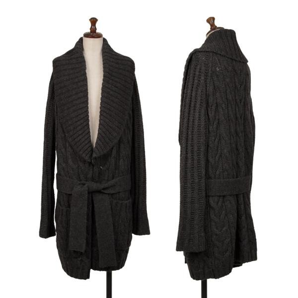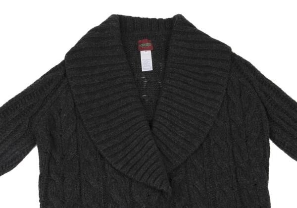 | ケンゾーKENZO アルパカ混ベルト付きリブカラーニットガウン チャコールグレーM |