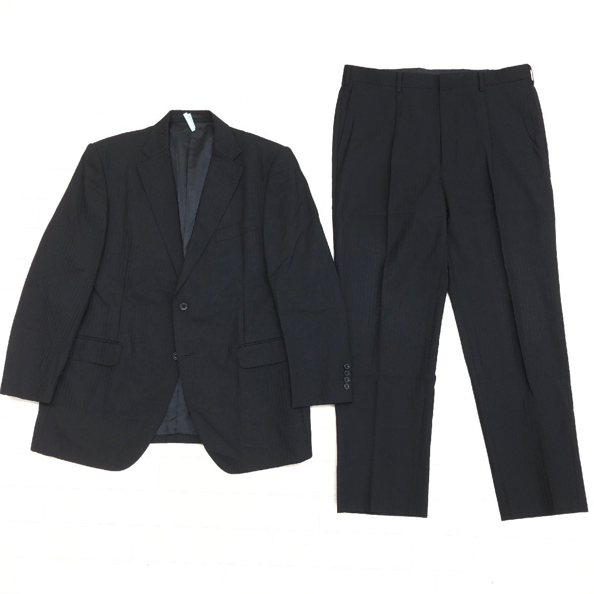 ●gotairiku 五大陸 シャドーストライプ シングルスーツ 上下セット 38B(BB6) 黒 ブラック ジャケット パンツ 特大 大きい LL XL 2XL 3L
