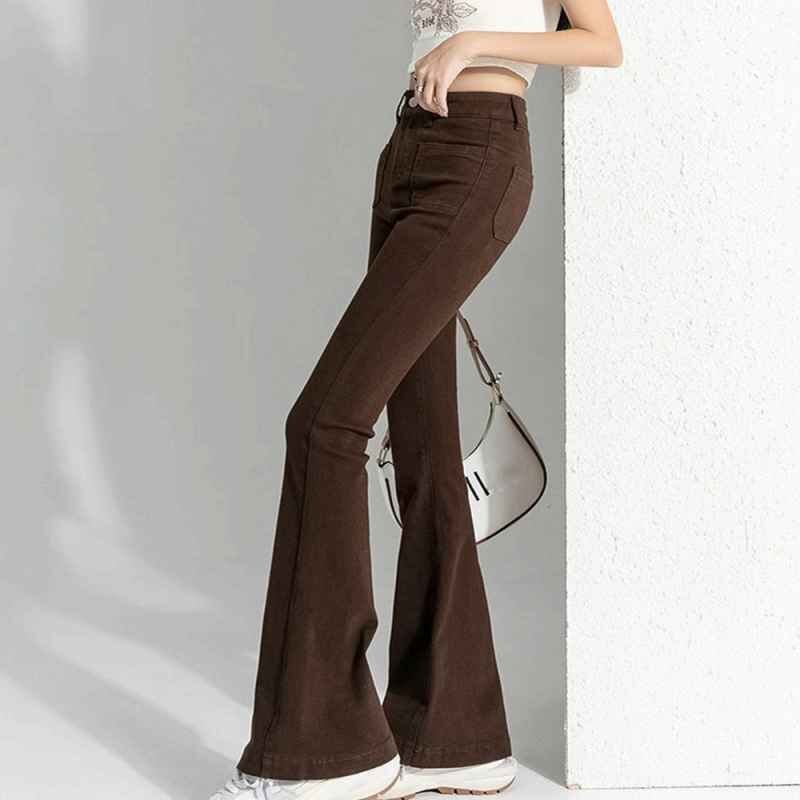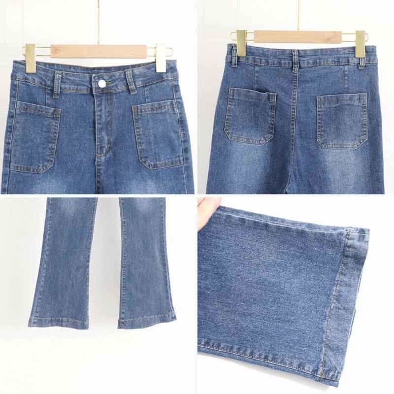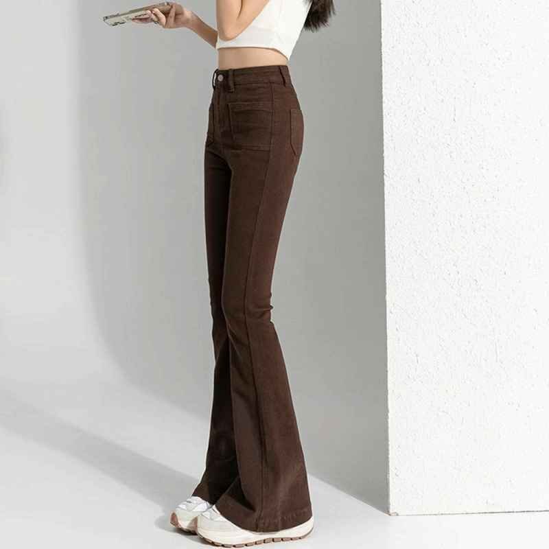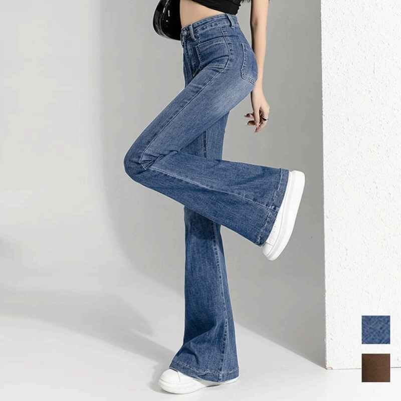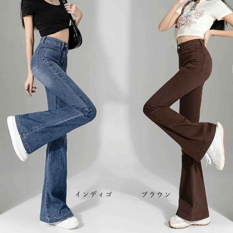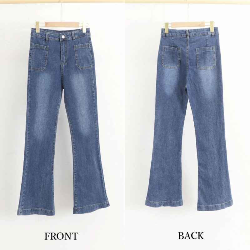 裾に向かってゆるやかに広がる美しいフレアラインのデニムパンツ