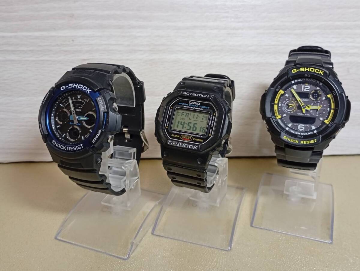 [251114-10M]【現状品】G-SHOCK 3本セット GW-3500B DW-5600E AW-591 CASIO 通電OK ガラス傷 欠けあり まとめ売り