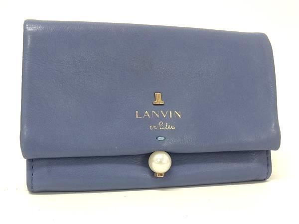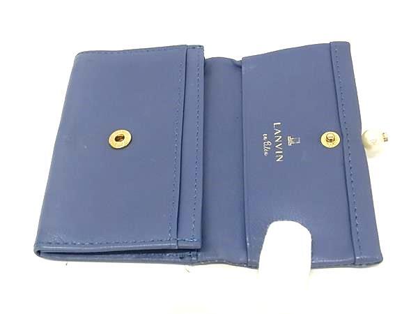 ■美品■ LANVIN ランバン レザー パール カードケース カード入れ 名刺入れ レディース ブルー系 DK5568