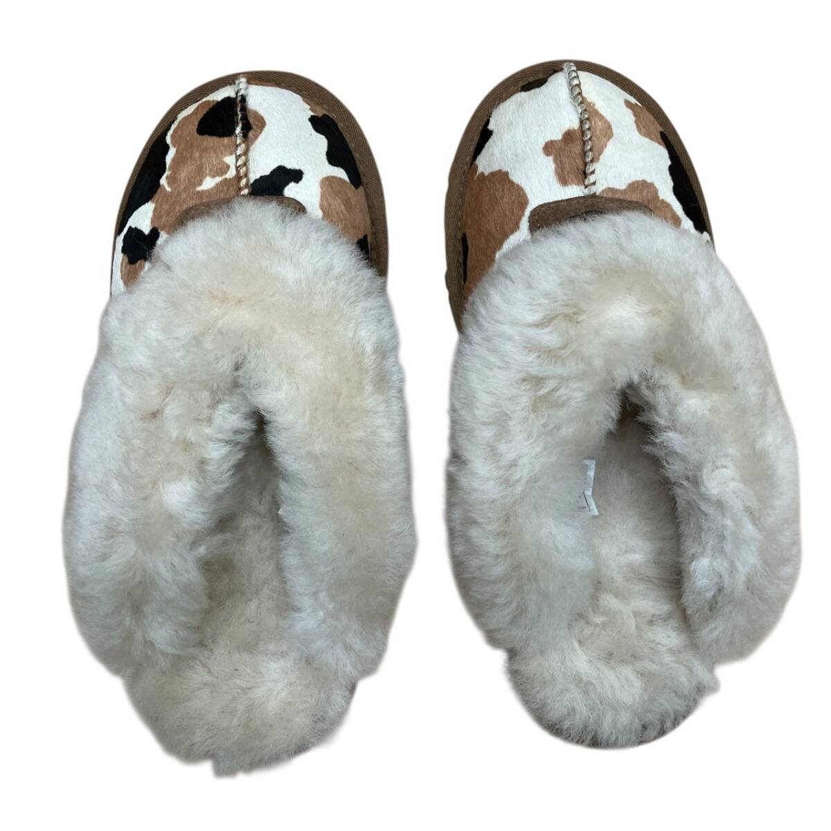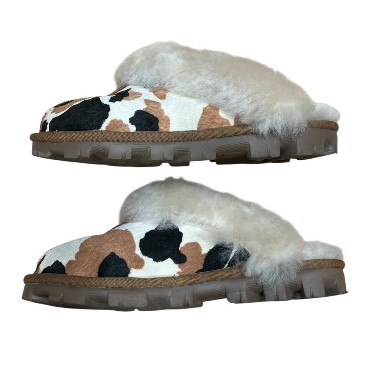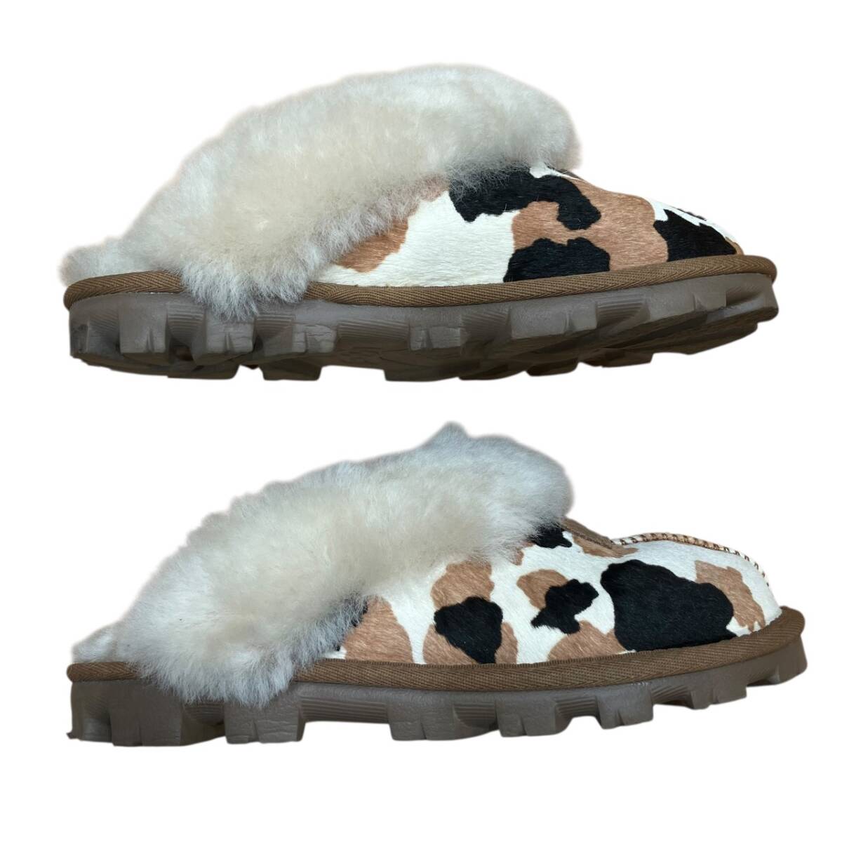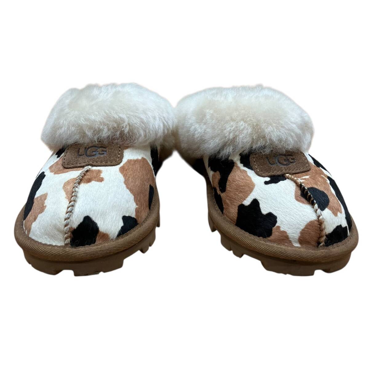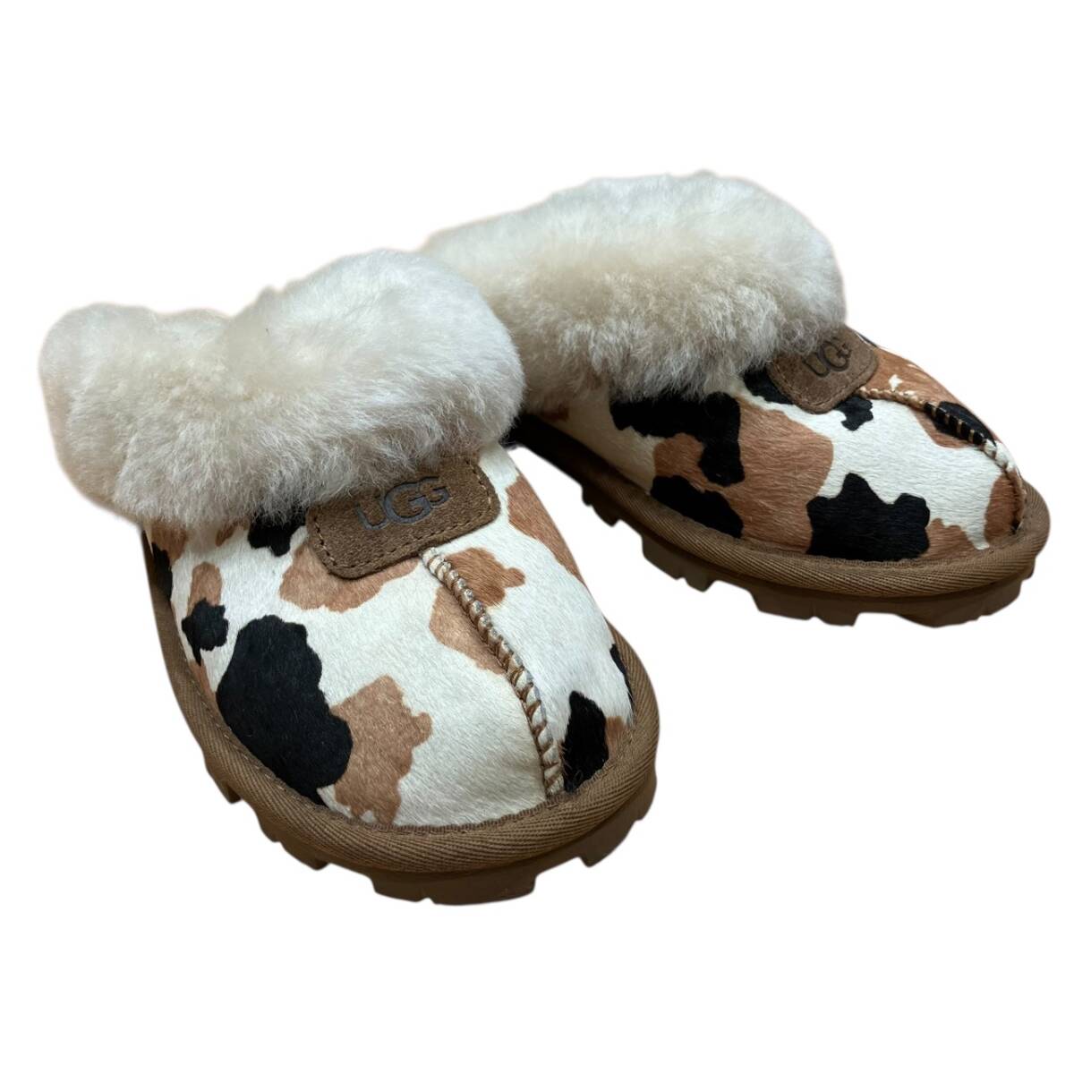 | UGG アグ ファー サンダル Coquette Cow Print CHESTNUT ムートン カウプリント US5 JP22cm レディース |