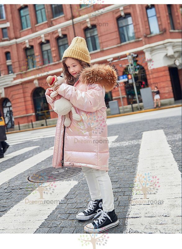 kids シャイニー ダウンコート ロングコート ピンク【140cm】中綿 防水 子供 冬物 冬服 K-303