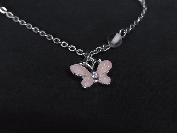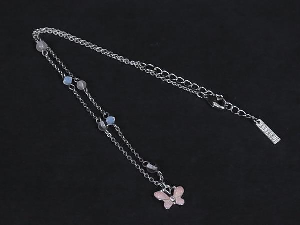 ■美品■ ANNASUI アナスイ バタフライ 蝶 ビーズ ラインストーン ネックレス ペンダント アクセサリー シルバー系×ピンク系 DK7102