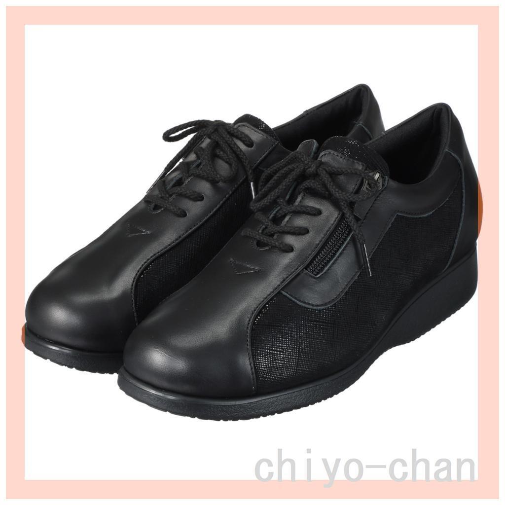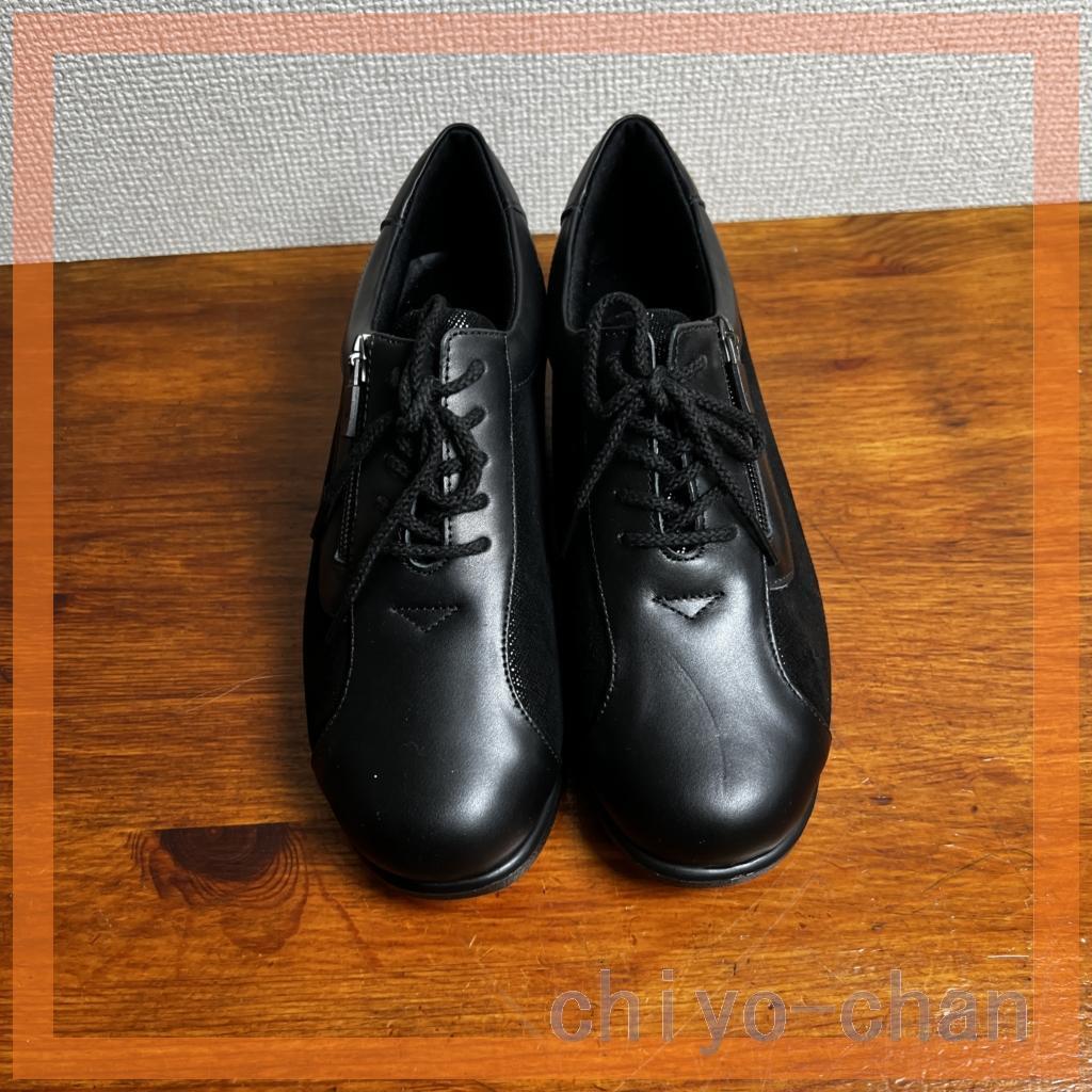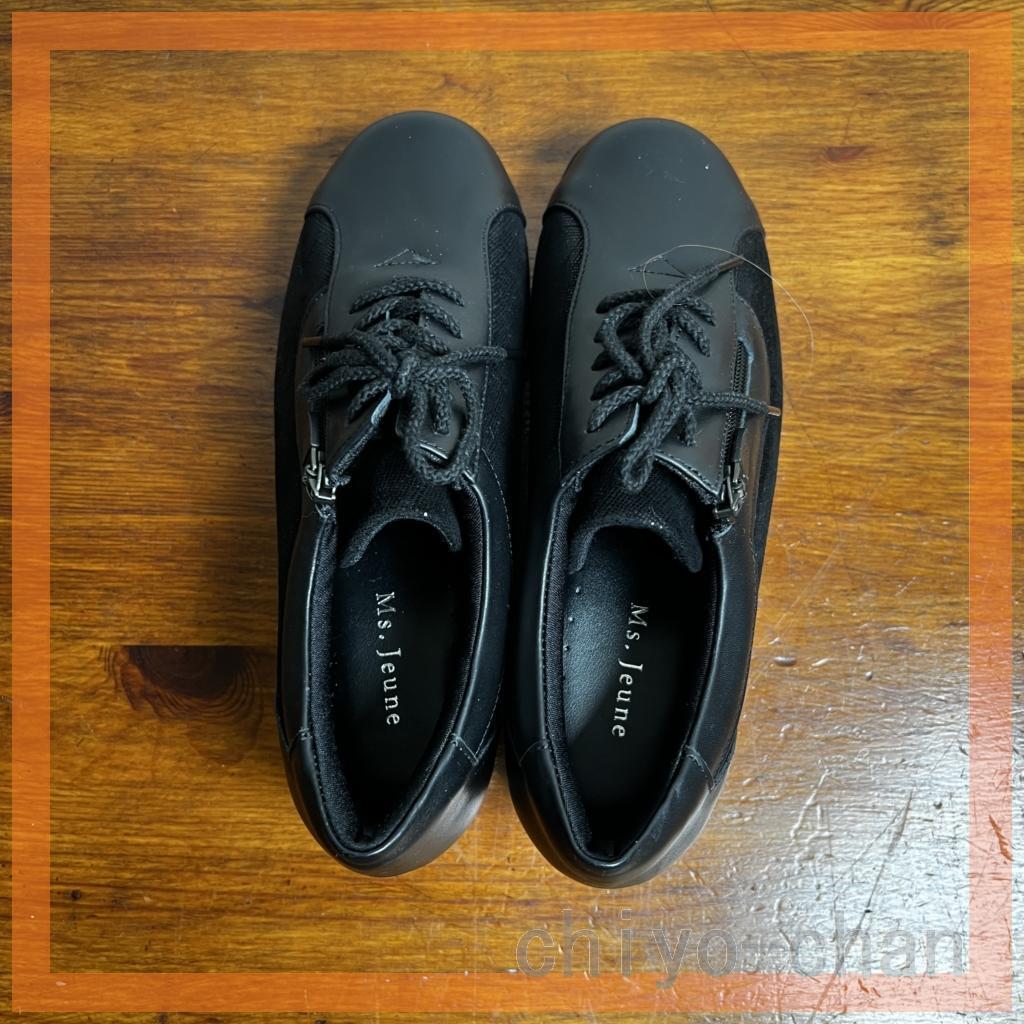 商品:ミズ・ジューヌ 牛革&山羊革コンビ レースアップシューズ ブラック 23.0cm 20-772252003