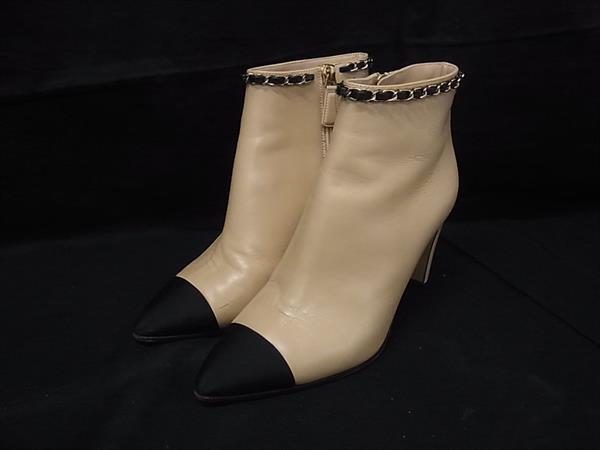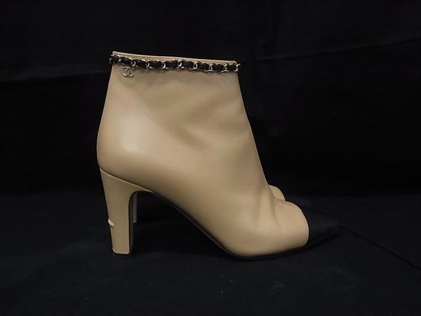 1円 CHANEL シャネル レザー×キャンバス ショートブーツ 表記サイズ 36 (約23cm) 靴 シューズ ベージュ系×ブラック系 FP8912