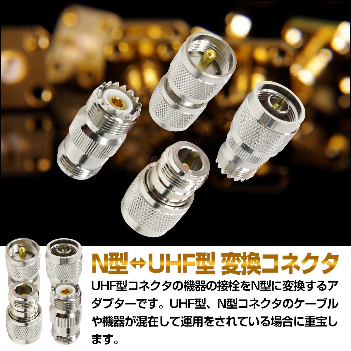 商 品 説 明N型、UHF型のオスとメス、どちらも相互で変換ができるアダプターのセットです。