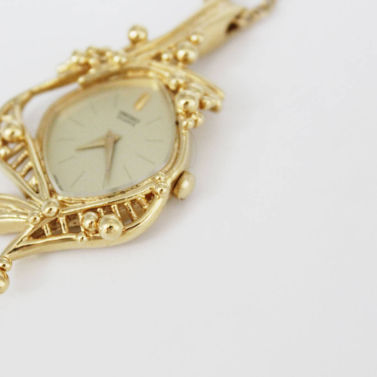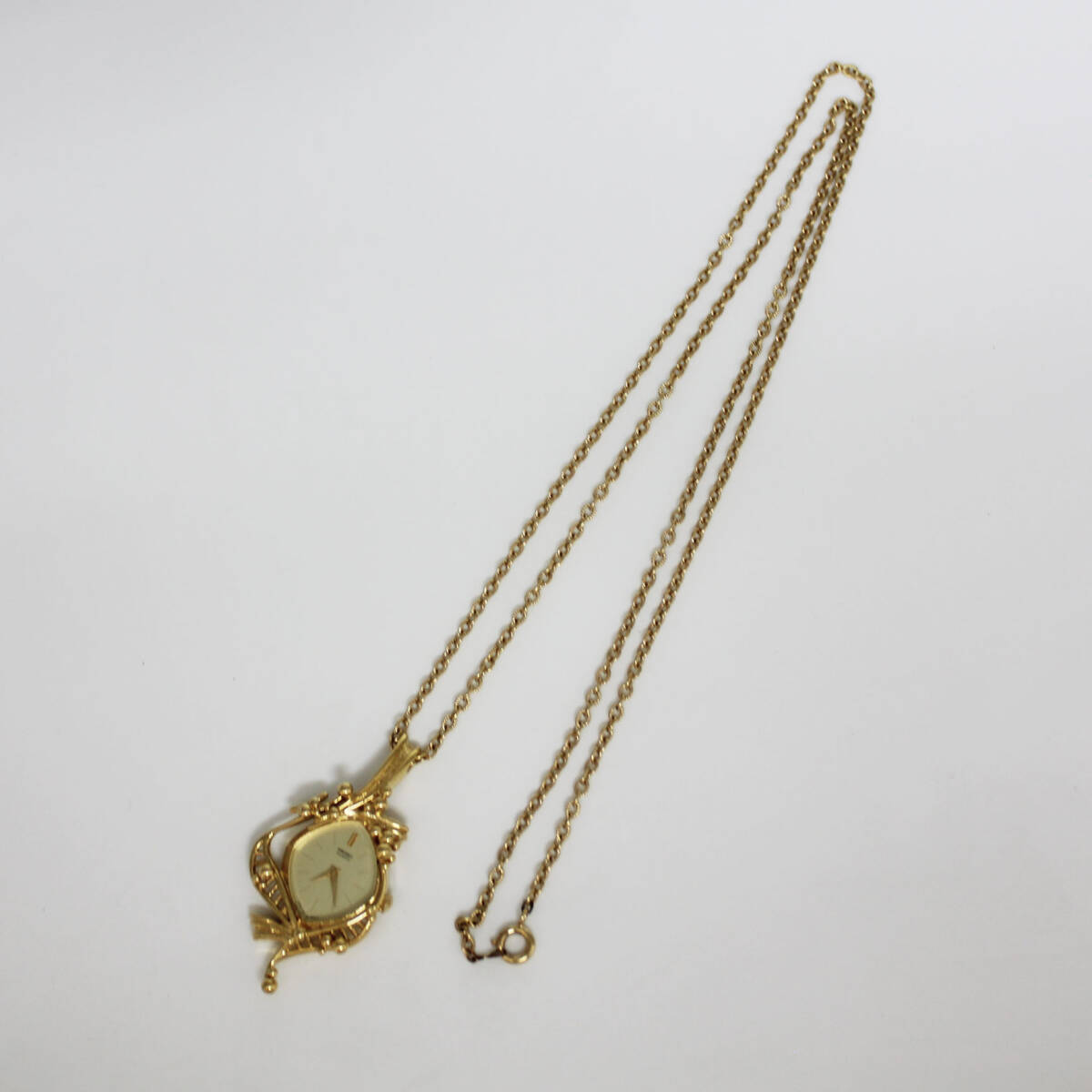 レディース懐中時計 クォーツ ジャンク 文字盤ゴールド ペンダントウォッチ