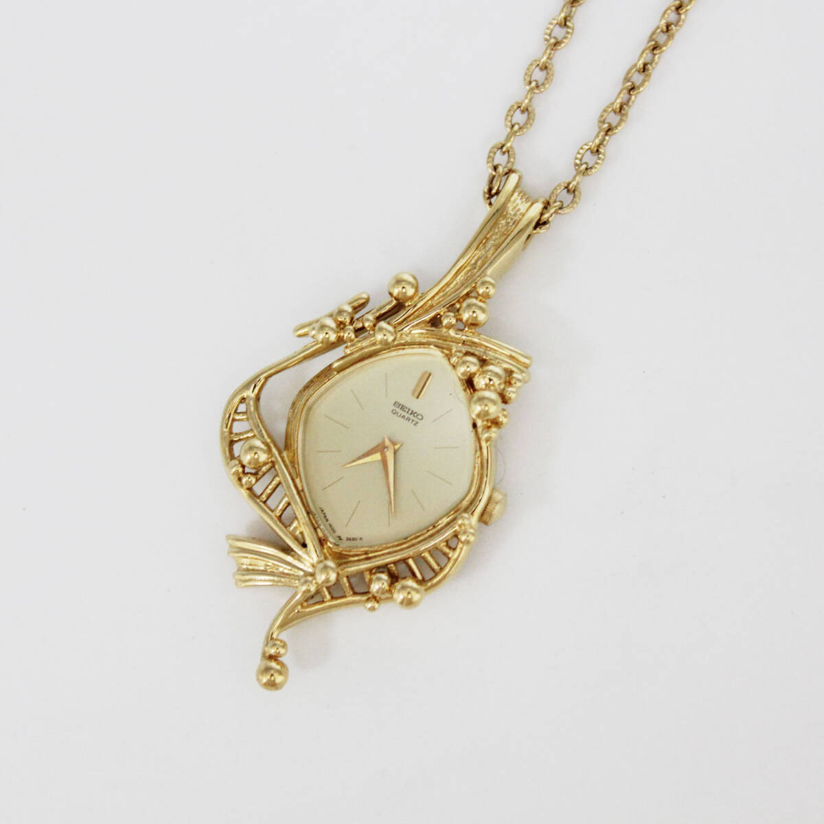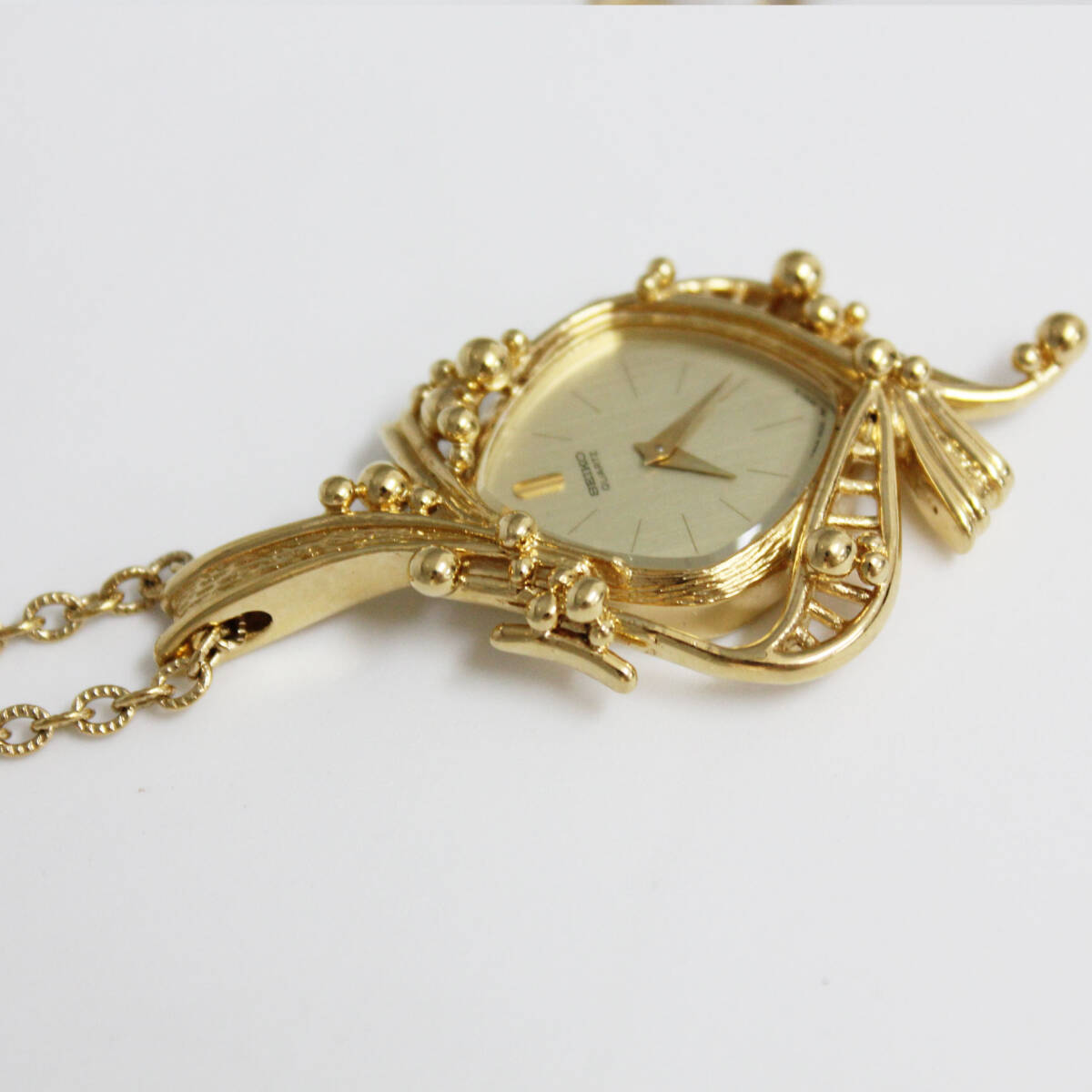 W251121-08 SEIKO セイコー 1400-6970 レディース懐中時計 クォーツ ジャンク 文字盤ゴールド ペンダントウォッチ
