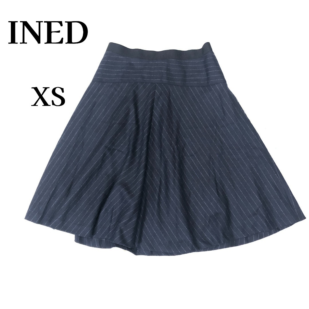 【美品】イネド INED ストライプ Aライン フレアスカート 5号 XS 紺