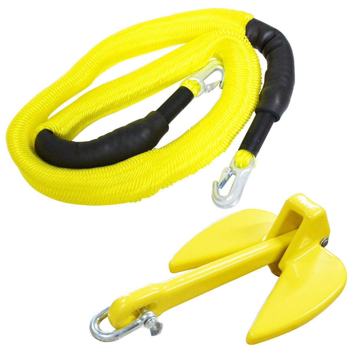 『伸縮ロープ/アンカーセット』ジェットスキー 爪型 アンカー 10LBS 4.5kg 黄色 6M フロート のびのび アンカー ロープ 黄色
