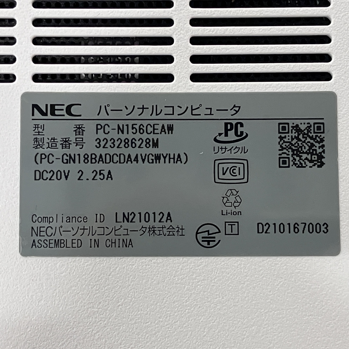 | メーカー名 | NEC | 型番 | PC-N156CEAW |