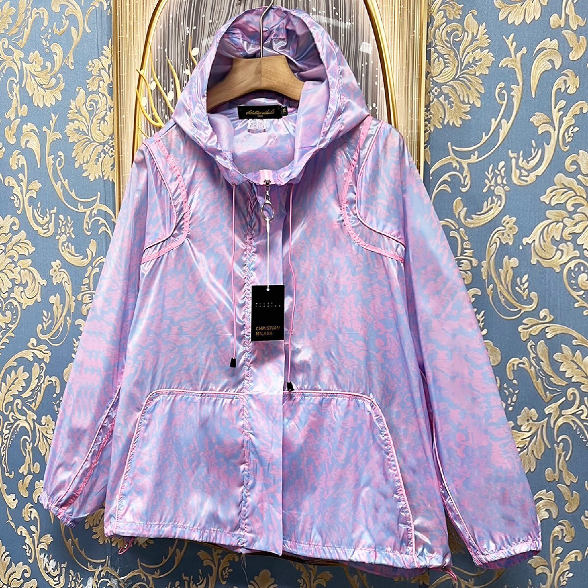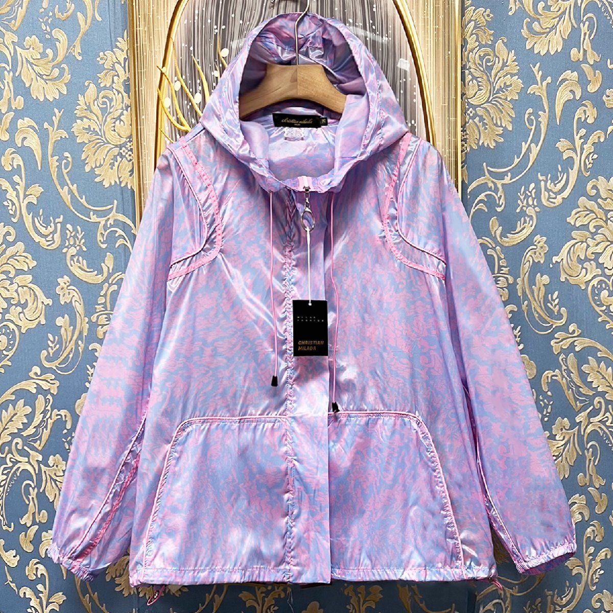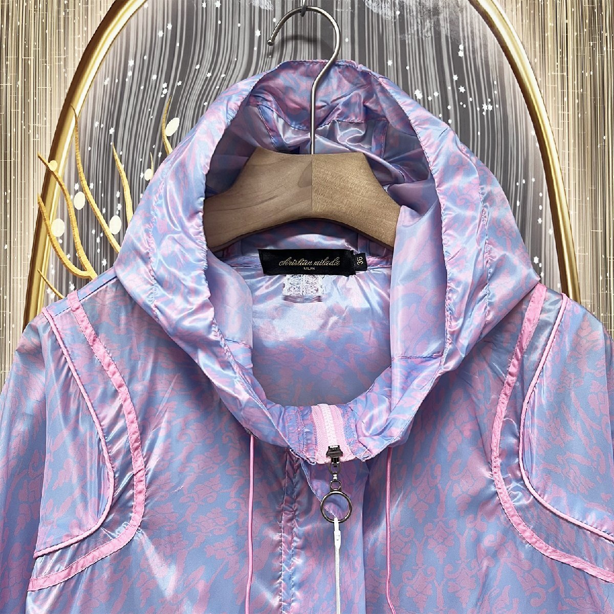定価5万★christian milada・ミラノ発・ジャケット★通気 速乾 薄手 フード付き 総柄 カラフル 日焼け止め UVカット レディース 夏用 S/34