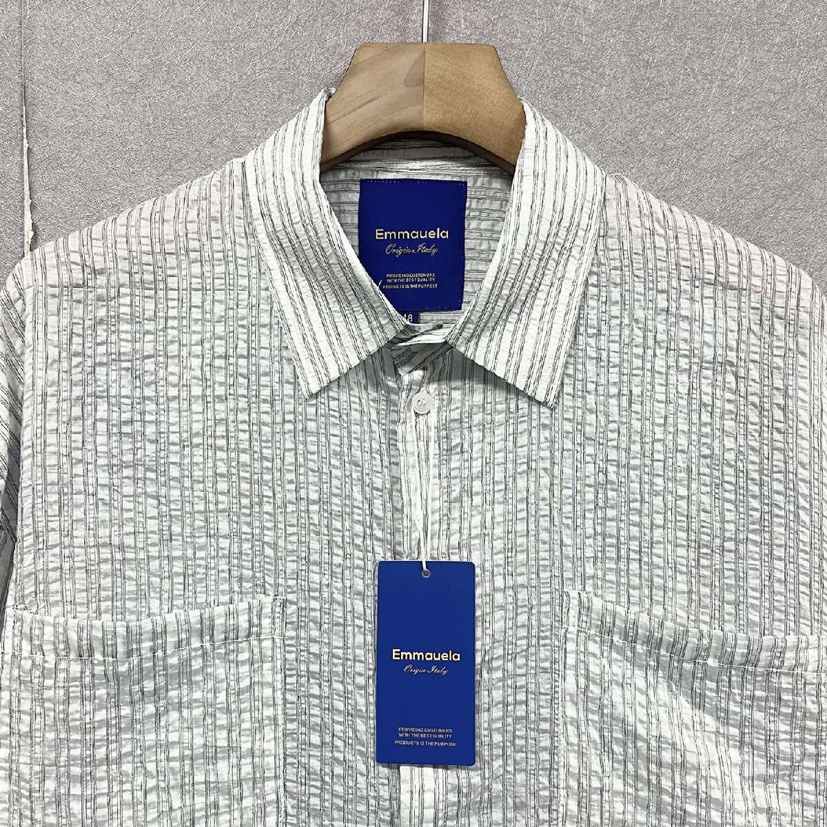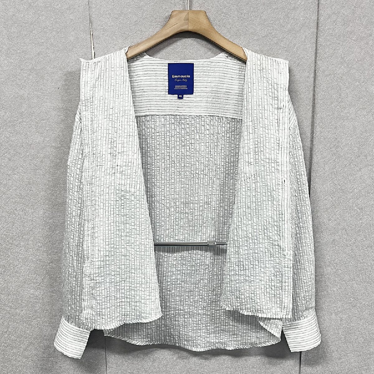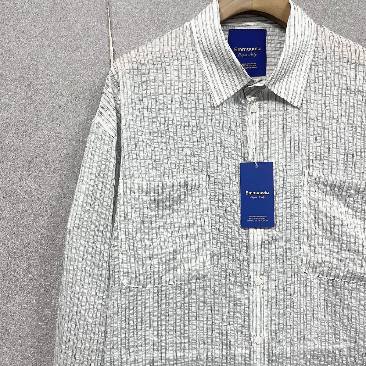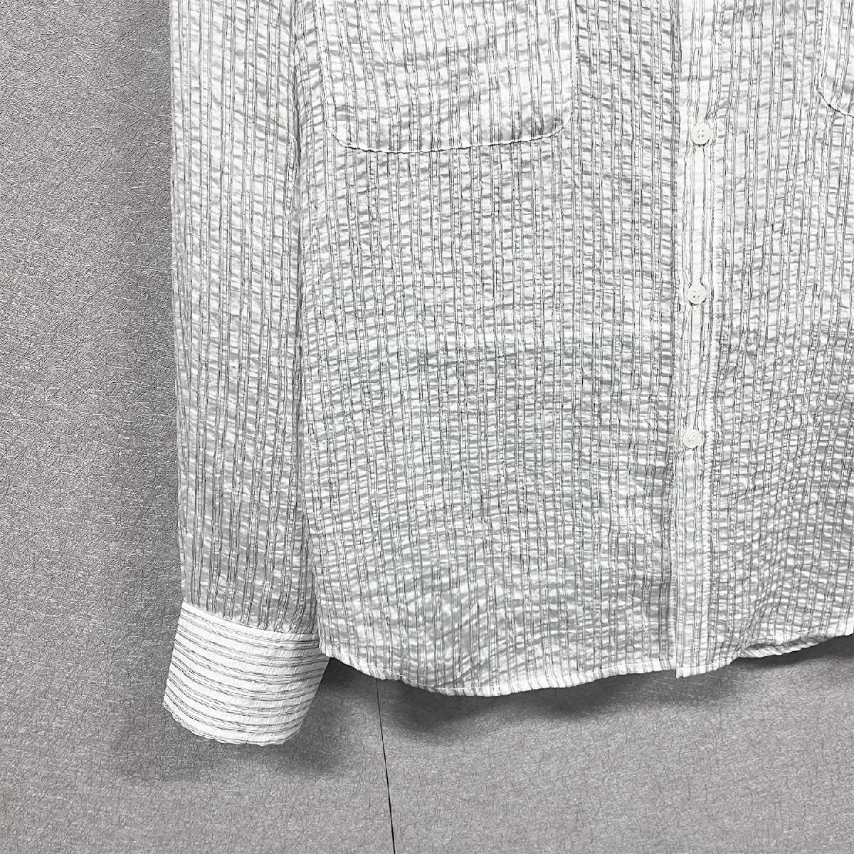人気・長袖 シャツ 定価4万◆Emmauela・イタリア・ミラノ発◆リネン混 速乾 通気 薄手 ストライプ柄 ゆったり 冷房対策 通勤 日常 L/48サイズ