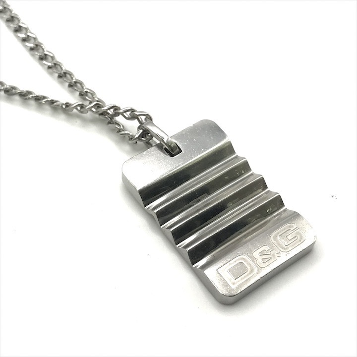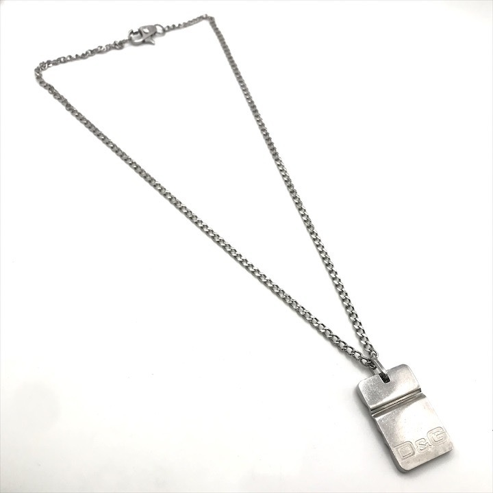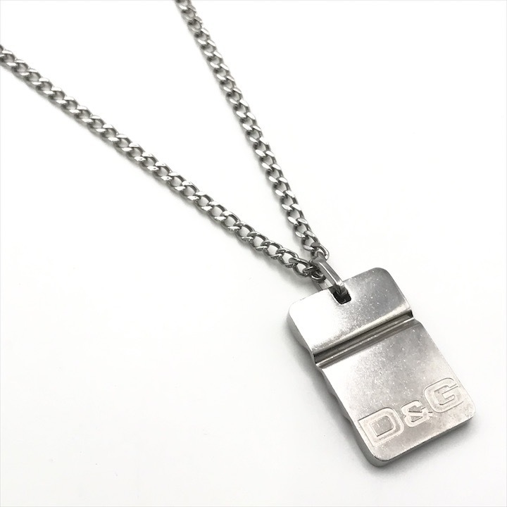 美品 Dolce & Gabbana D&G ドルチェ&ガッバーナ ドルガバ ロゴ プレート チェーン ネックレス メンズ アクセサリー シルバー r382 | |||
