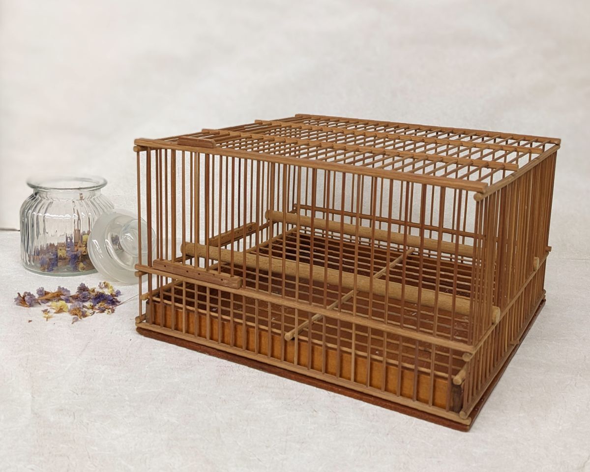 kk346■【現状品】竹製中型小鳥かご インコ 小鳥 文鳥 メジロ 鳥籠 アンティーク/100