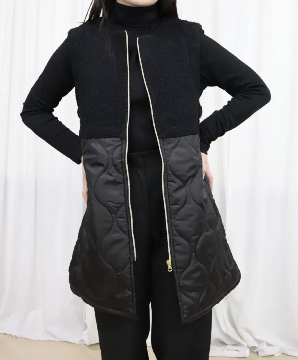 袖の取り外しができ、キルティングコートにもロングベストにもなる2wayコートです!