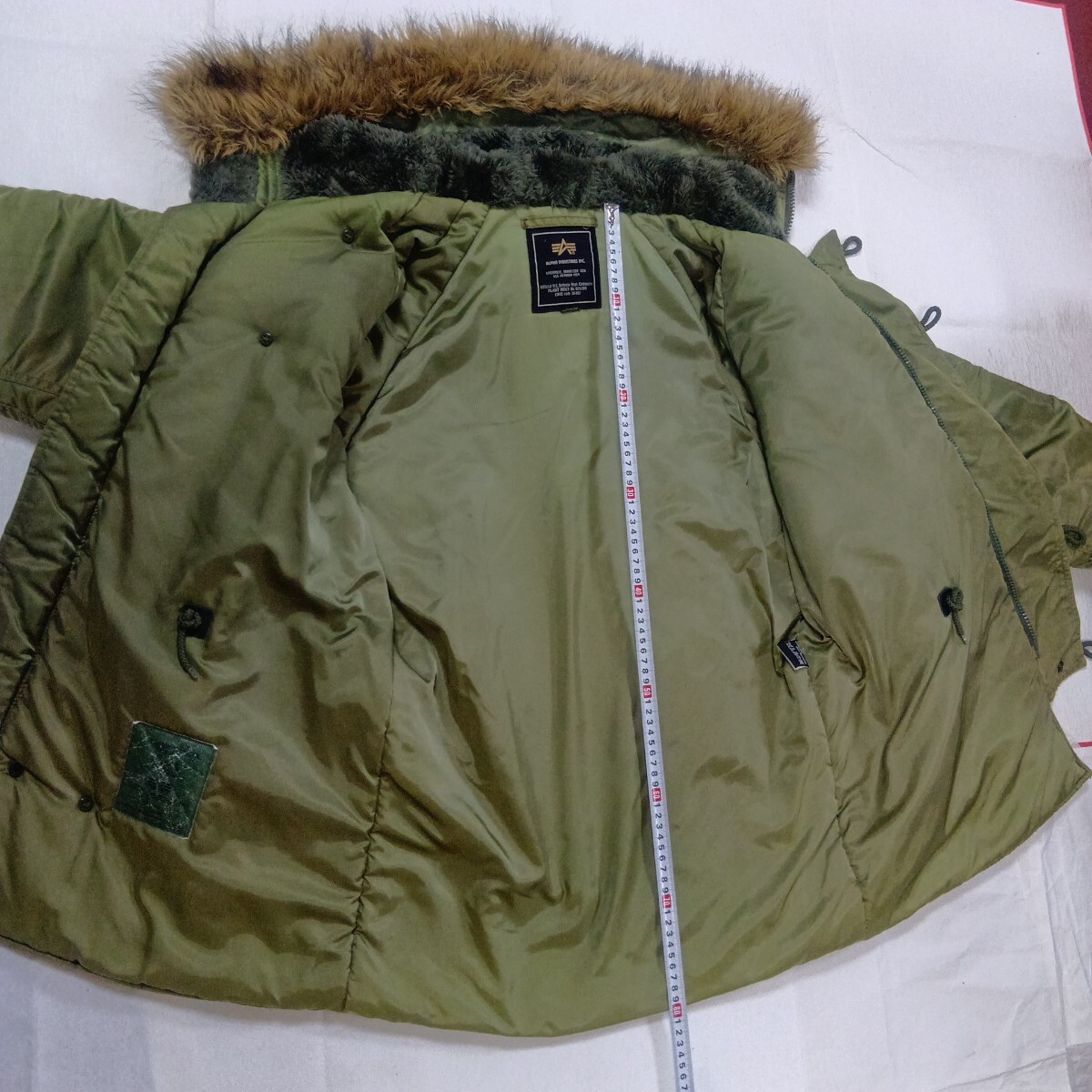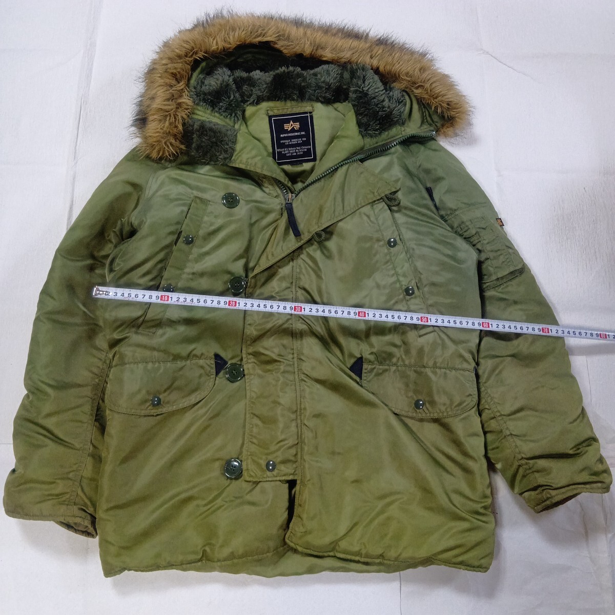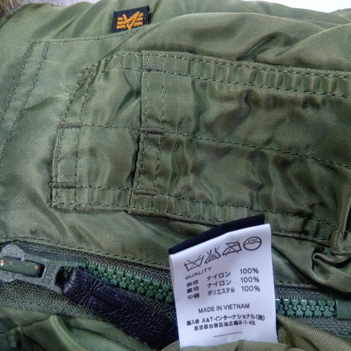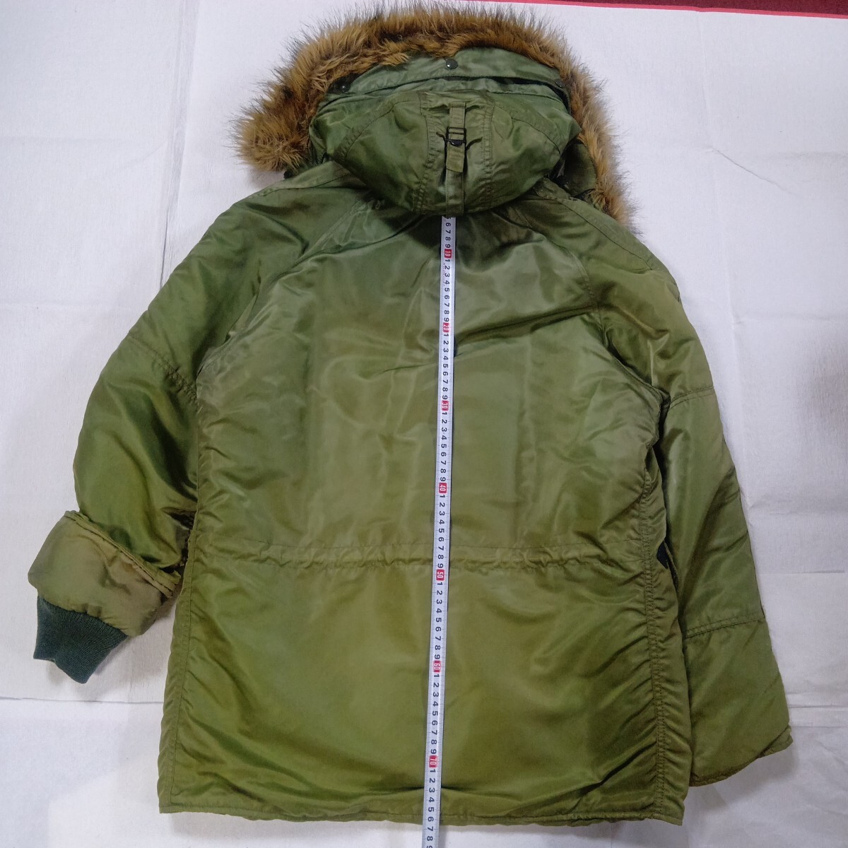 B2379 アルファインダストリーズ ファーボアフード 中綿 ナイロン フライトジャケット N-3B カーキ ミリタリー メンズM 古着 同梱不可
