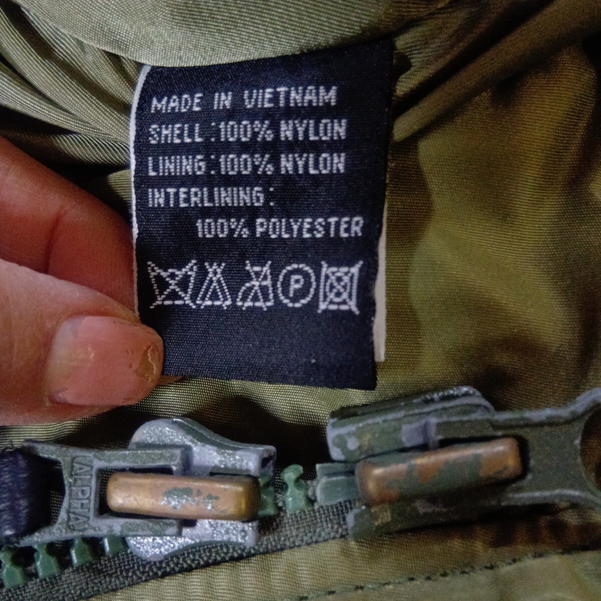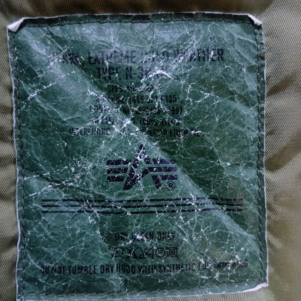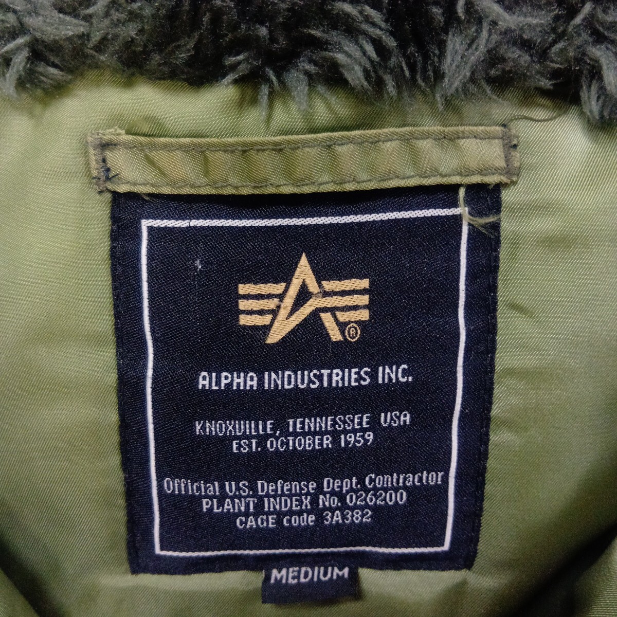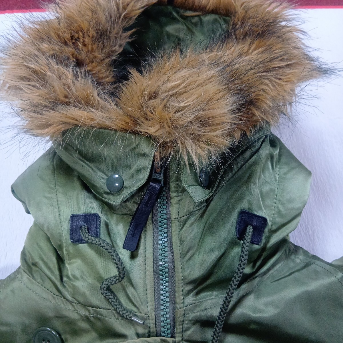 B2379 アルファインダストリーズ ファーボアフード 中綿 ナイロン フライトジャケット N-3B カーキ ミリタリー メンズM 古着 同梱不可