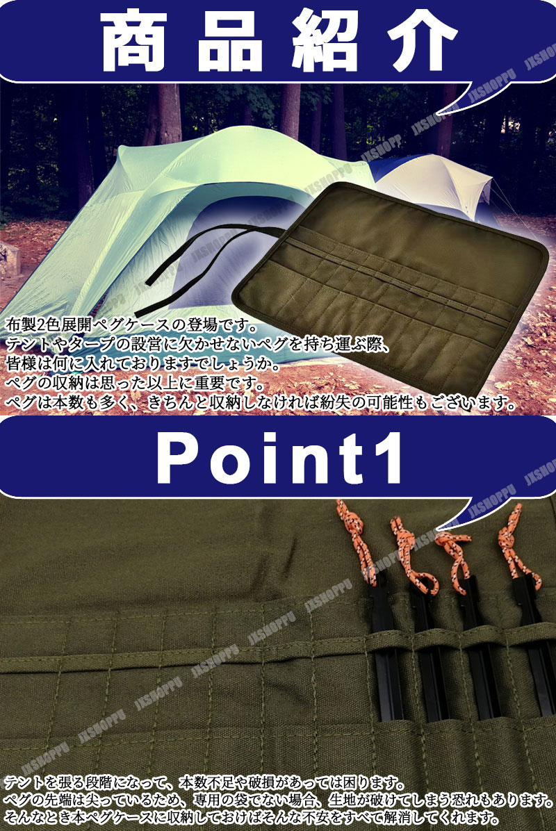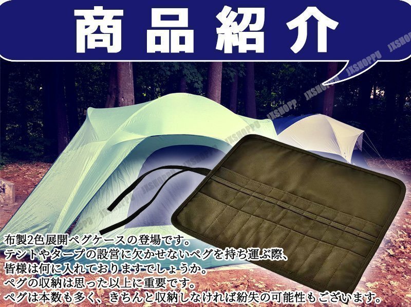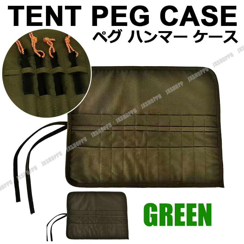 送料0円 頑丈 帆布製 ペグケース [グリーン] ペグハンマー 収納 ケース 筆入れ ペグ キャンプ アウトドア テント BBQ レジャー グッズ