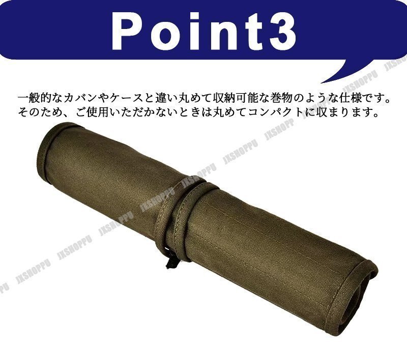 一般的なカバンやケースと違い丸めて収納可能な巻物のような仕様です。