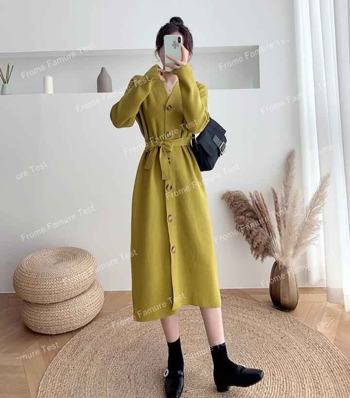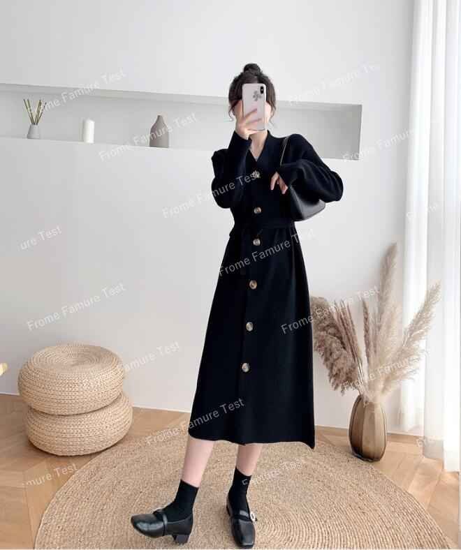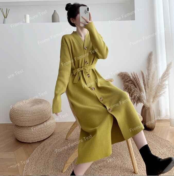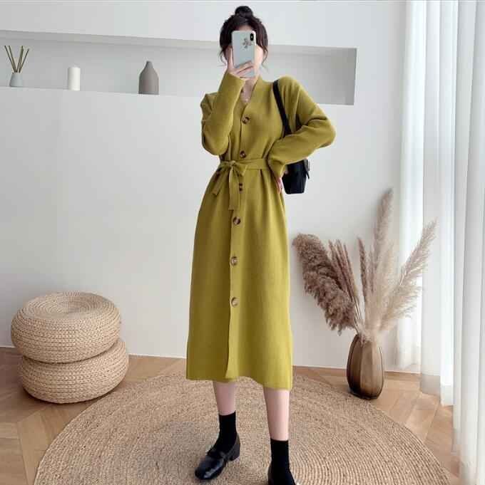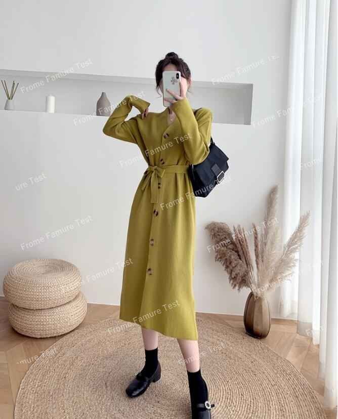 S-XL ワンピース ロングワンピース レディース ニットワンピース ファッションドレス L グリーン