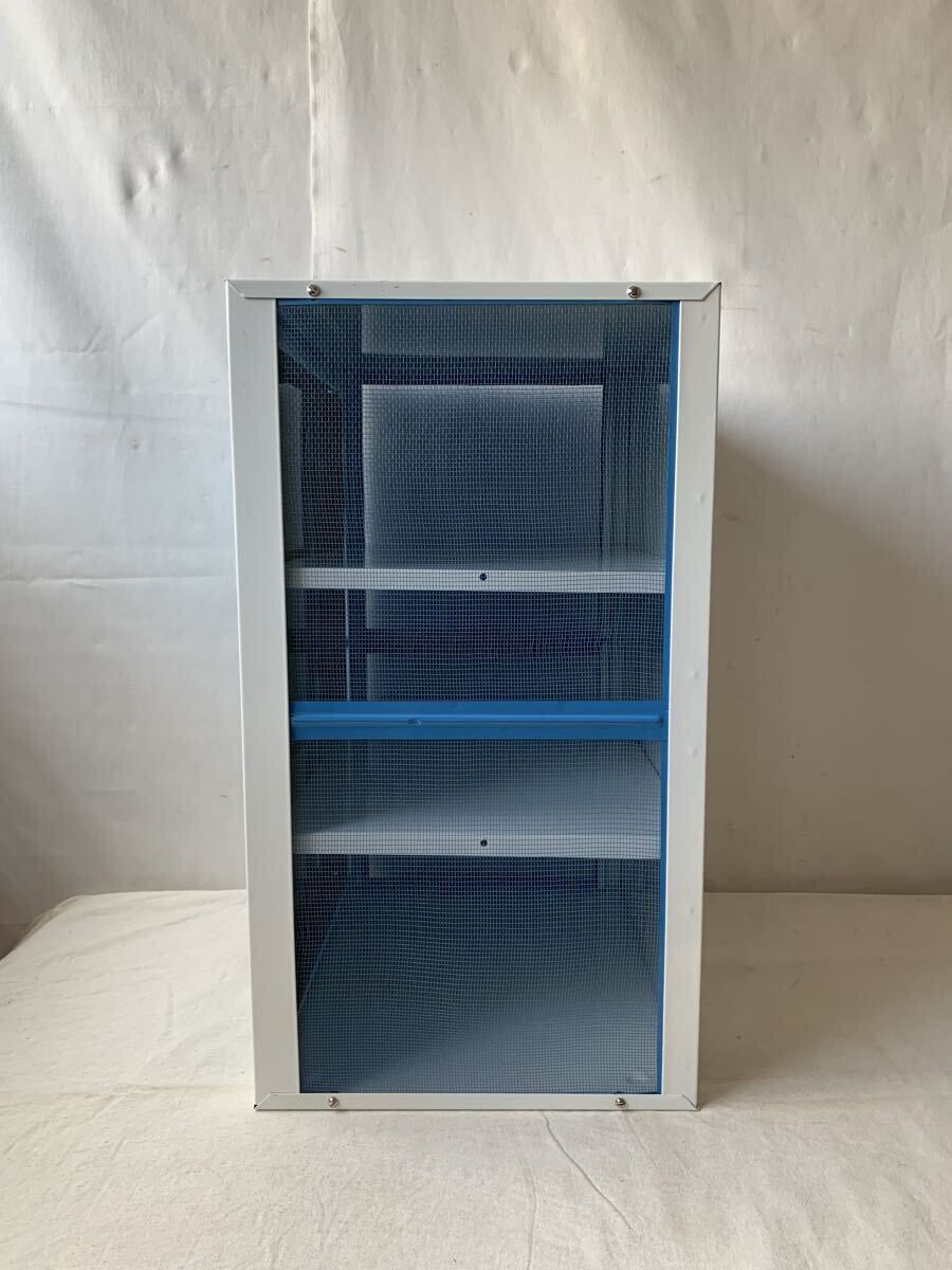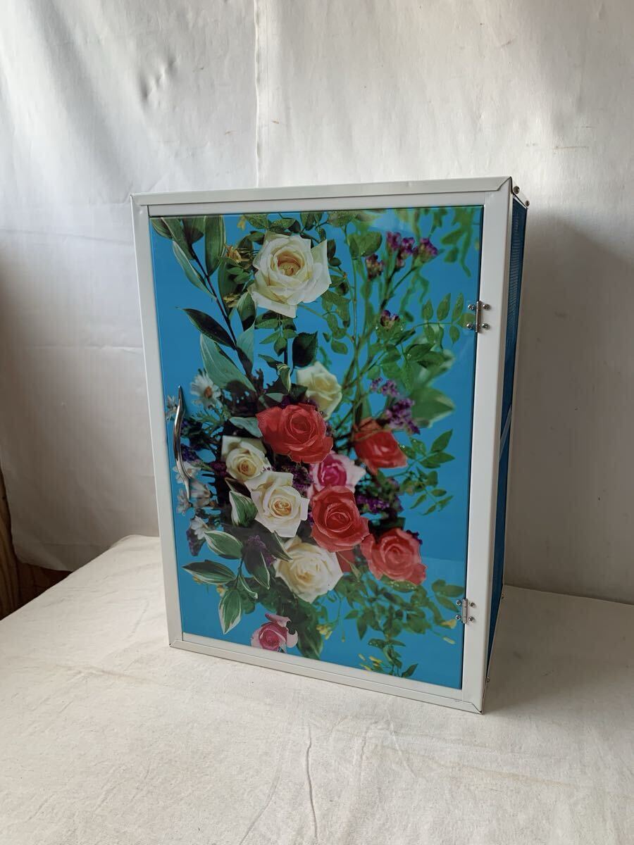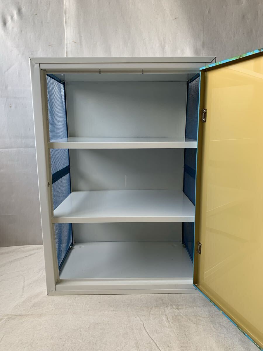 デッドストック品 デザインが素敵なアイアン製収納ケースです。当時物です。食器や小物などを収納するお部屋のインテリアやお店のディスプレイ、イベント出店時の什器などに使って頂くと素敵だと思います。昭和レトロな空間演出にいかがでしょう。
