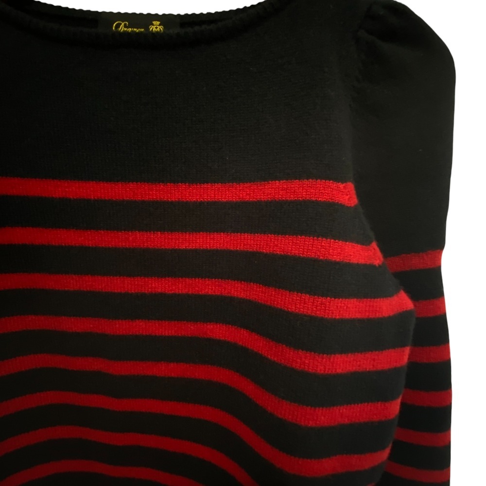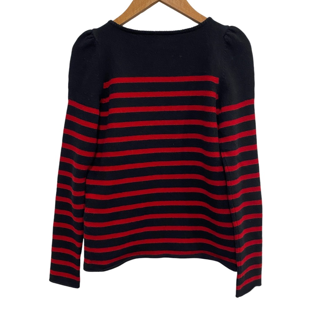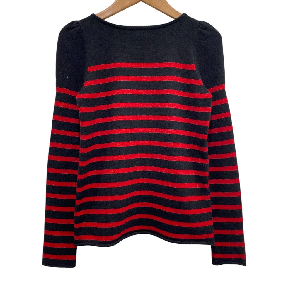 商品名:Drawer ドゥロワー カシミヤ パフショルダー ボーダーニットセーター サイズ1 ブラック レッド
