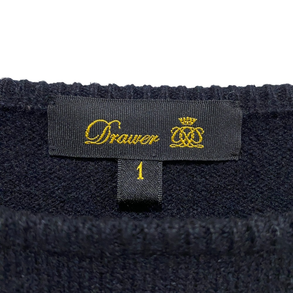 美品 Drawer ドゥロワー カシミヤ パフショルダー ボーダーニットセーター サイズ1 ブラック レッド