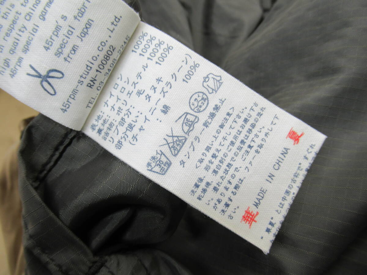 【送900円】3010 45R フォーティファイブアールピーエム キルティングコート ミディ丈 カーキ タヌキファー ナイロン100% 1