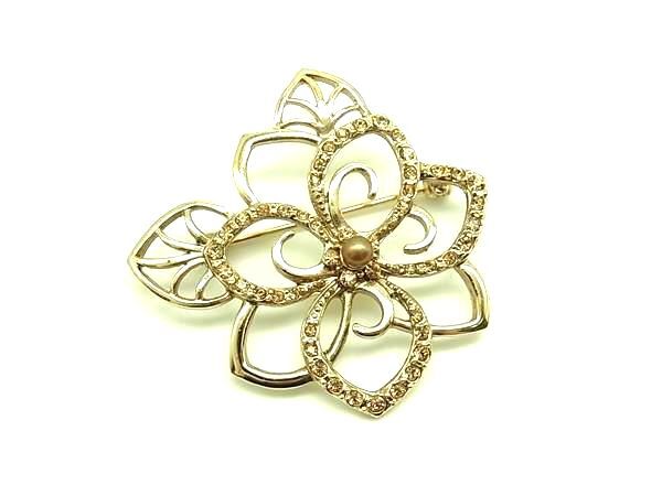 ■美品■ MONET モネ ラインストーン フラワー ピンブローチ ピンバッジ アクセサリー レディース ゴールド系 DI6414
