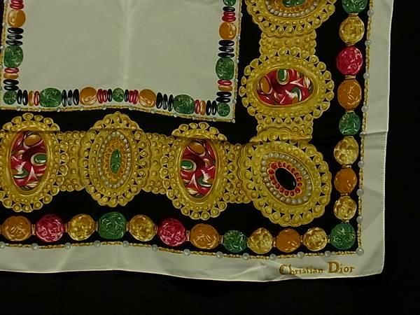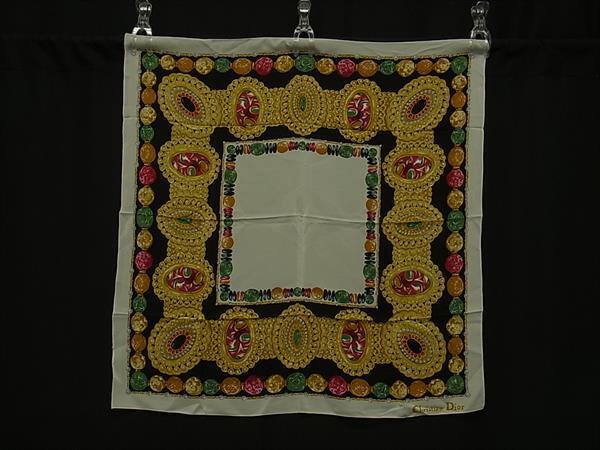 ■美品■ ChristianDior クリスチャンディオール 総柄 スカーフ ストール レディース ベージュ系×マルチカラー DJ0228