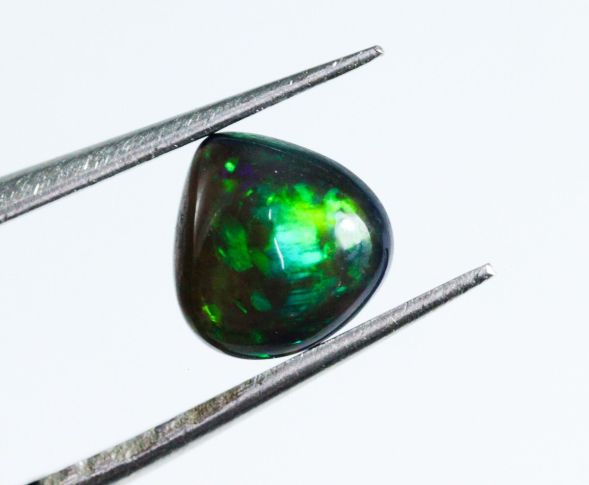 ※処理ブラックオパールは、色を強調するために処理が施された天然オパールです。エチオピア産オパールは通常、明るい色や半透明の状態で産出されますが、深い黒色にするために処理が行われます。