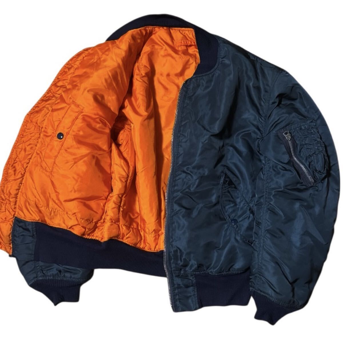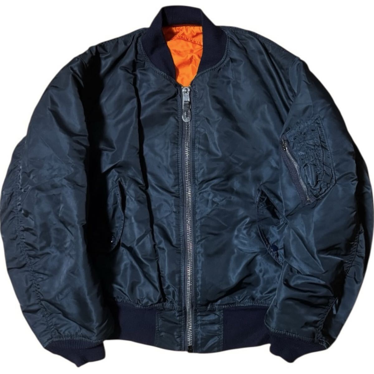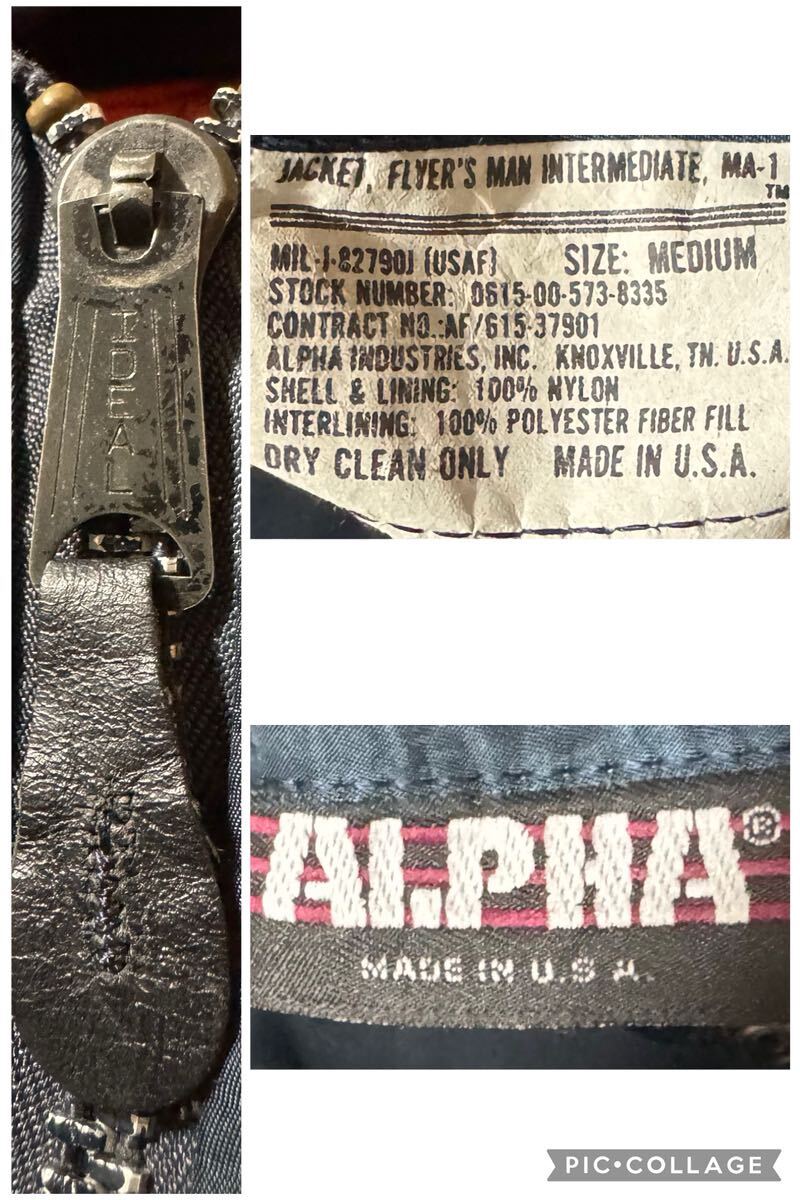 ALPHA INDUSTRIES 80s USA製 3本タグ ビンテージ MA-1 フライトジャケット リバーシブル ネイビー Mサイズ IDEALジッパー 民生品