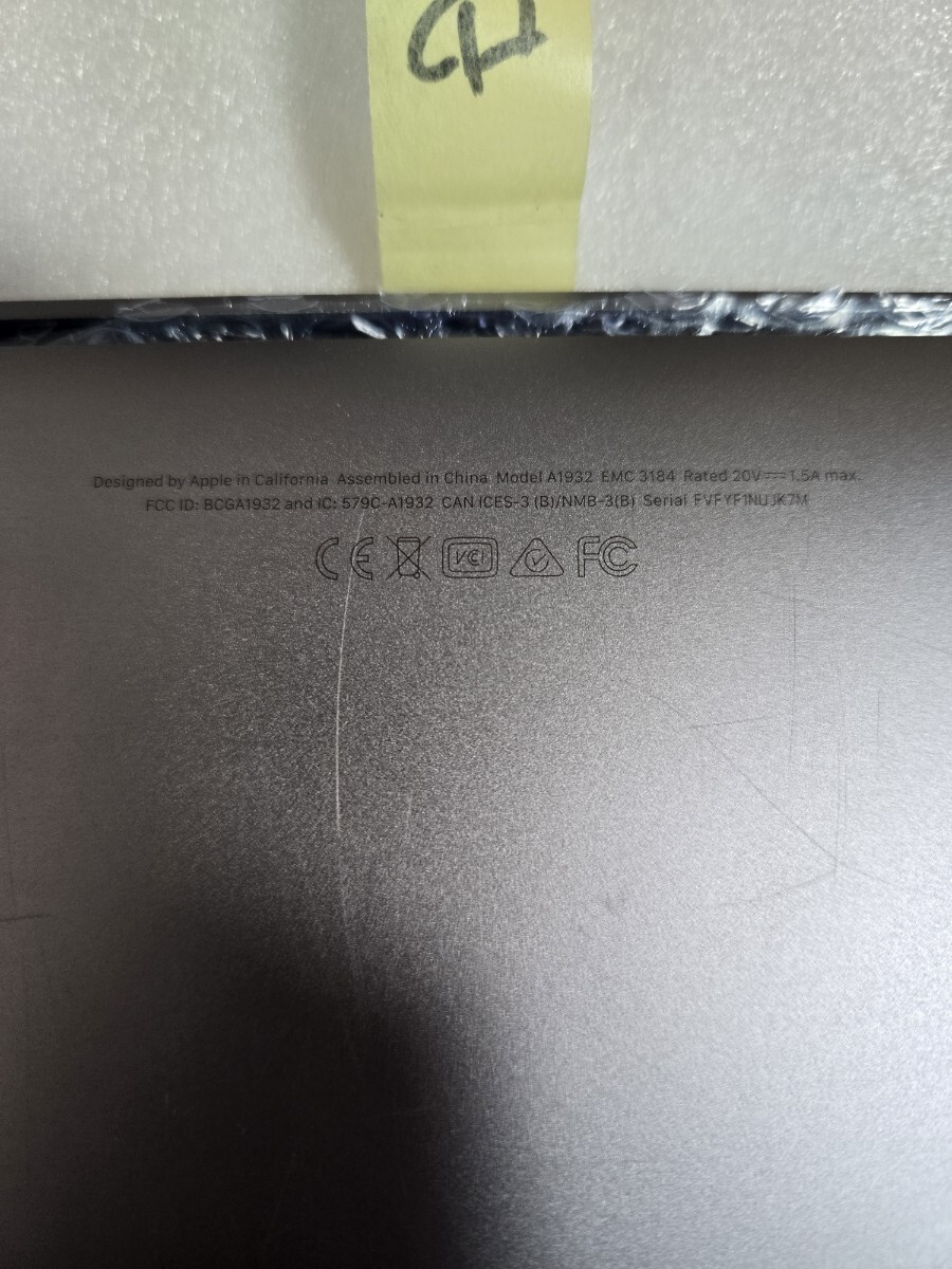 Apple MacBook Air A1932 13インチ 純正 交換用液晶 スペースグレー 上半身部 裏ぶた付きの出品です。