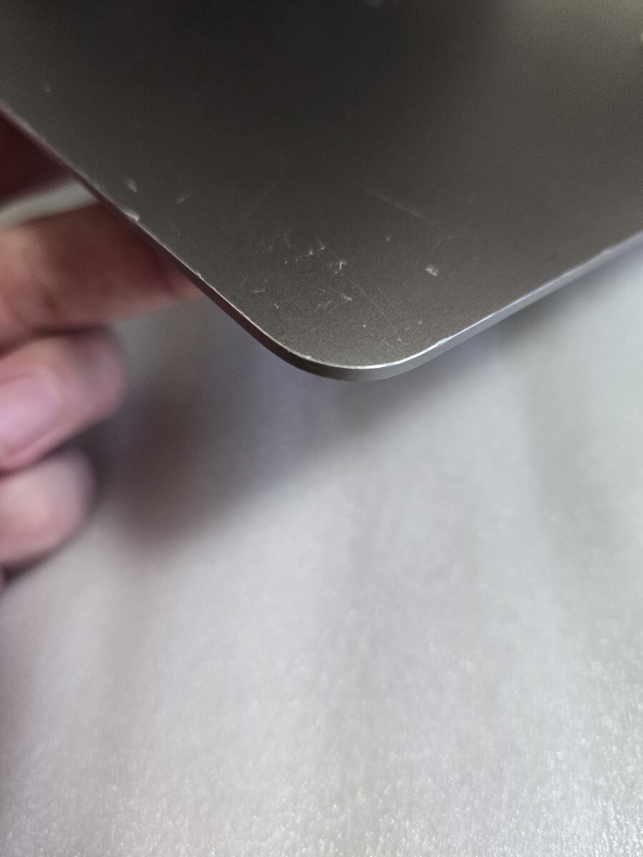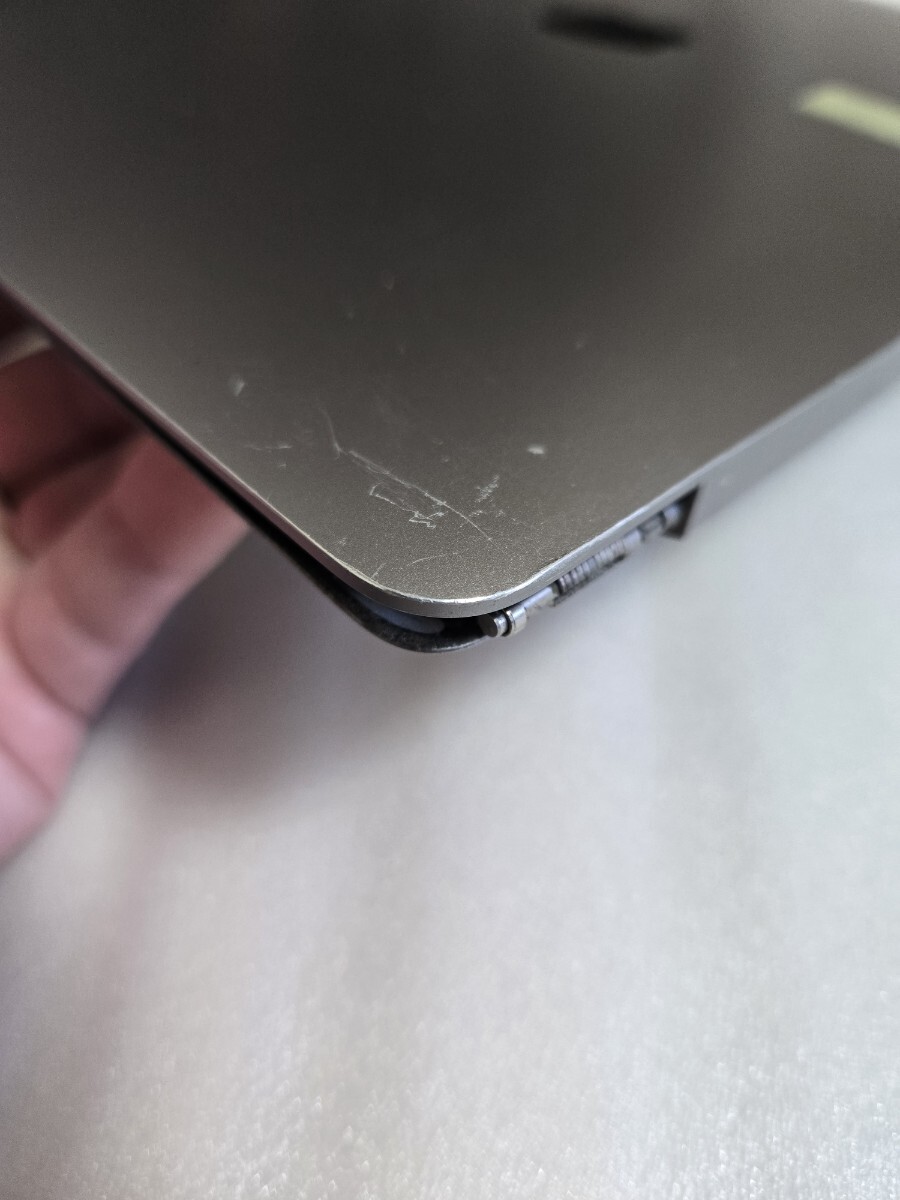 液晶にキーボード痕、天板と裏ぶたに擦り傷が多数あります。